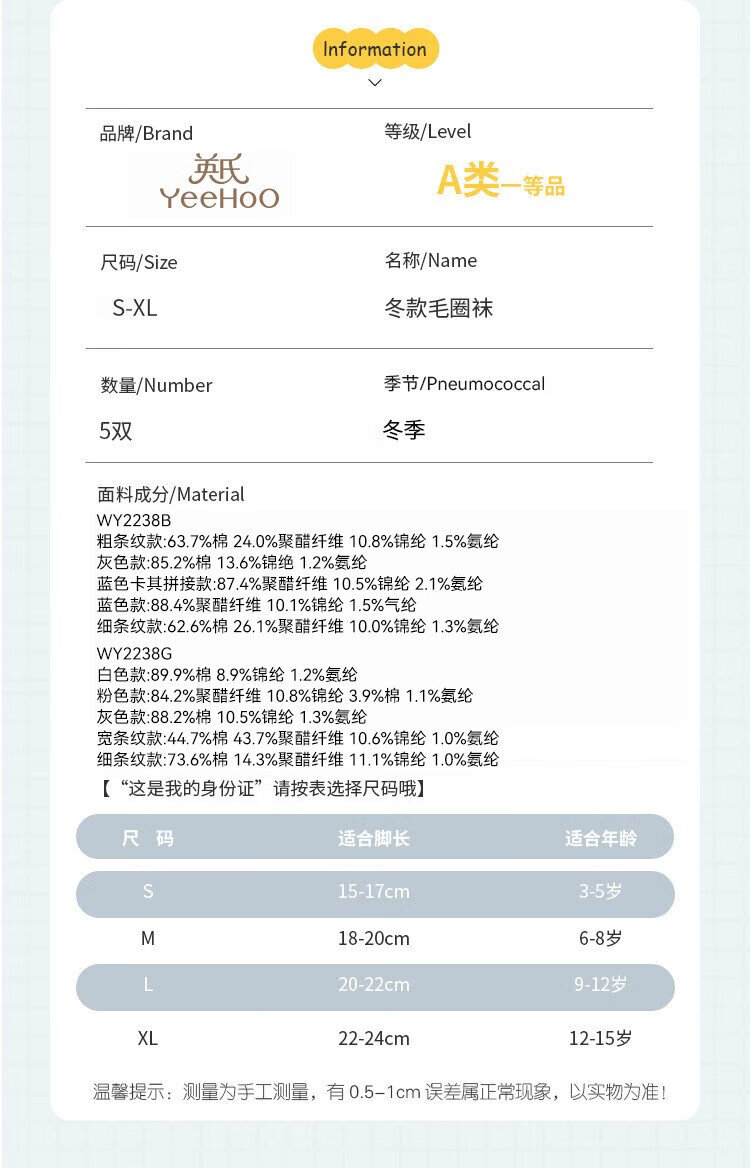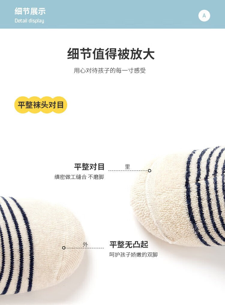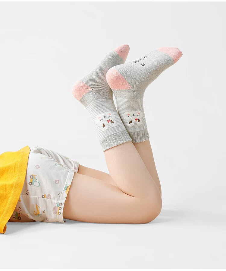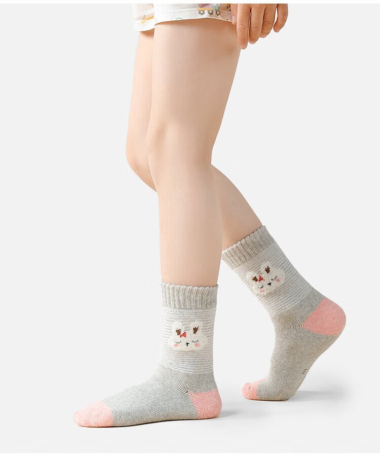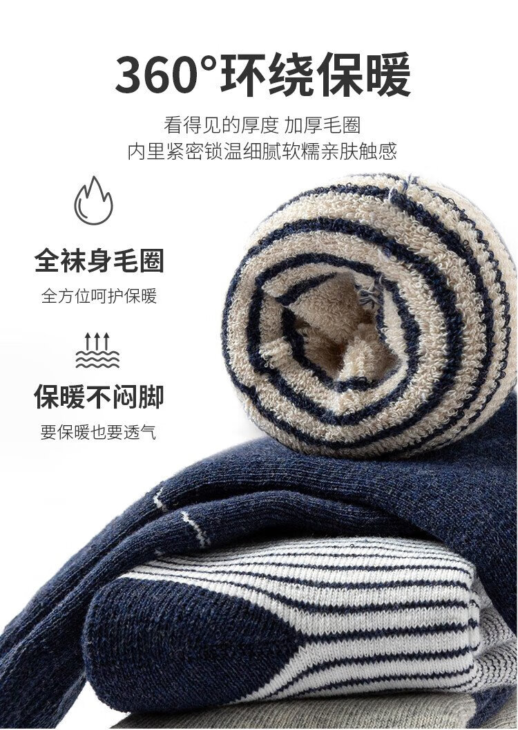 YEEHOO children's socks for boys and girls in autumn and winter thickened terry socks with stripes 5 pairs of mid-tube cotton socks student socks boys M