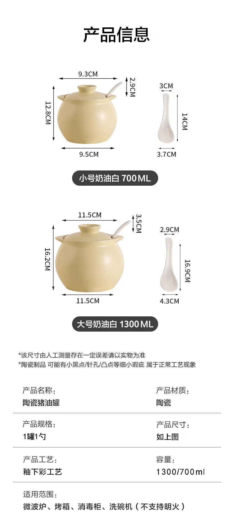 Large-capacity lard tank made in Tokyo, ceramic salt tank, oil tank, seasoning tank, pepper oil storage tank, 700ML cream white