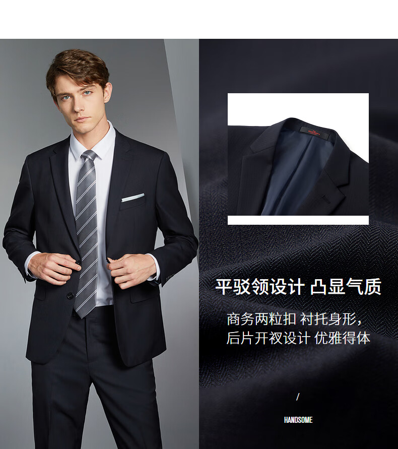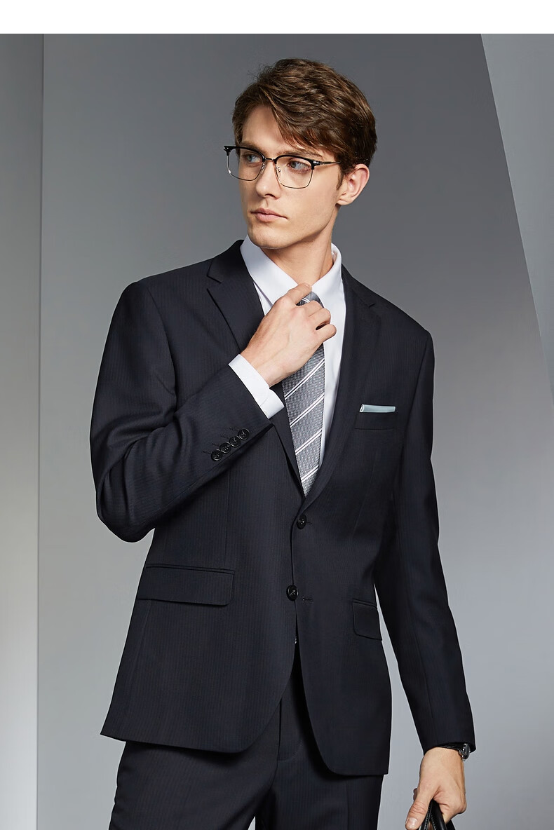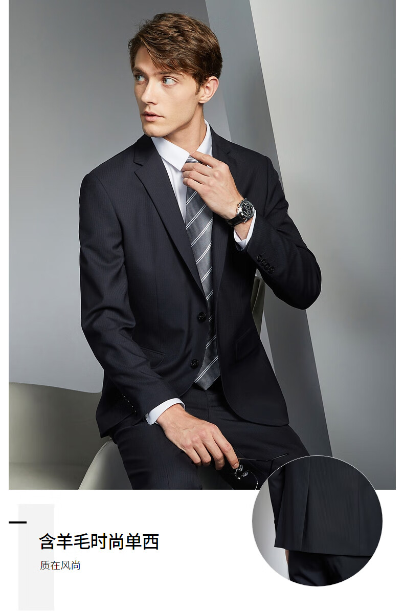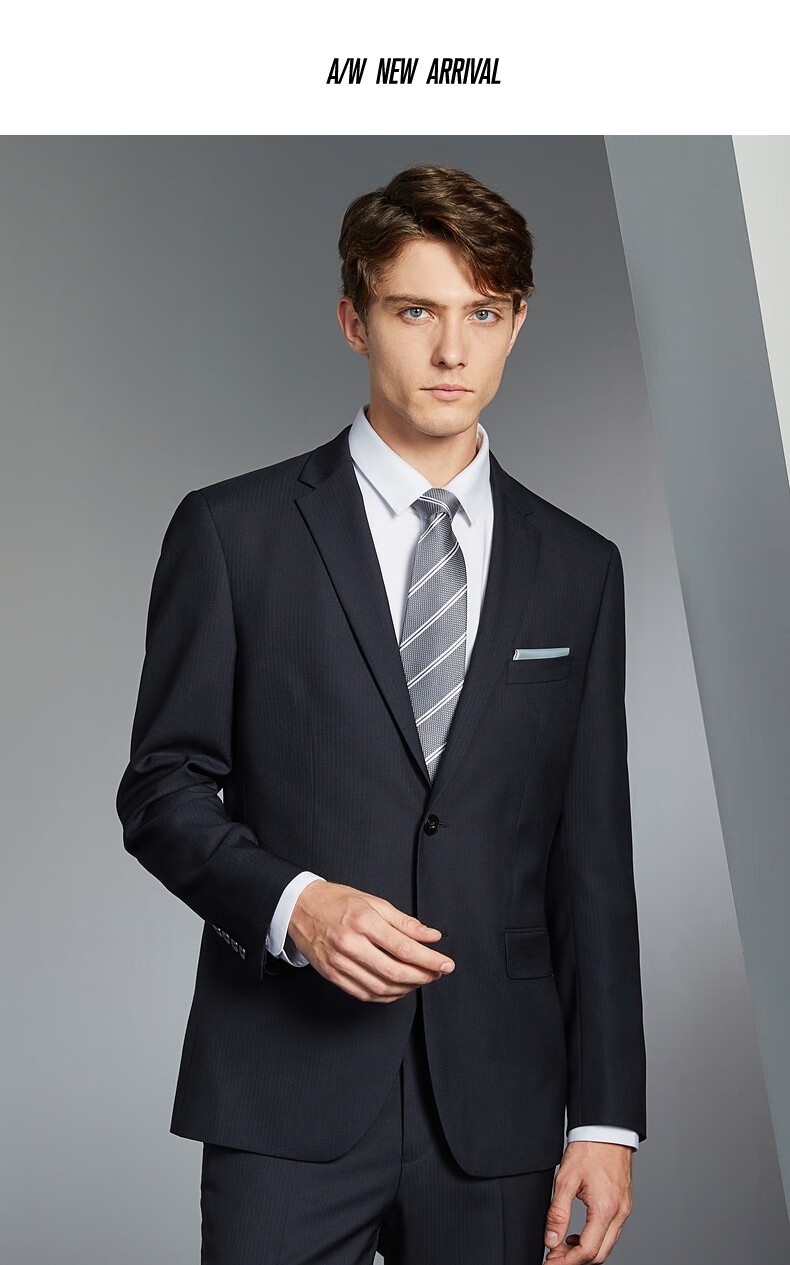 Qipai wool-containing men's suit spring and autumn fashion casual herringbone jacquard single suit jacket