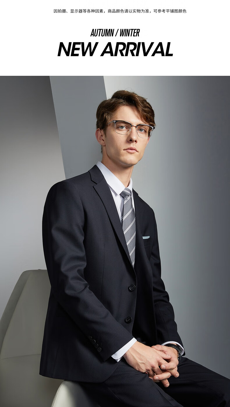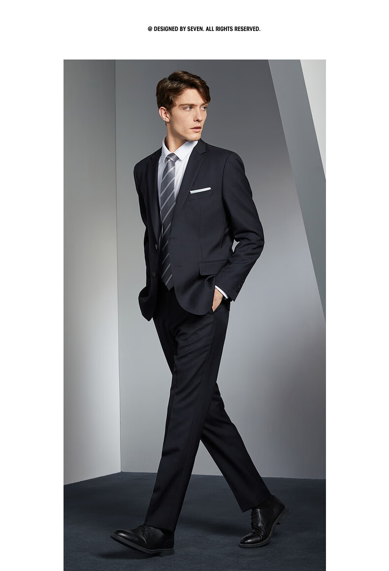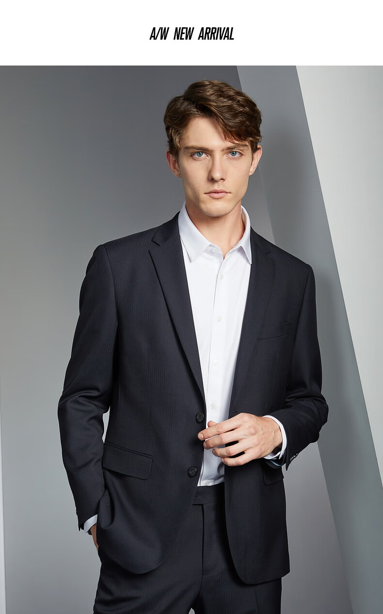 Qipai wool-containing men's suit spring and autumn fashion casual herringbone jacquard single suit jacket