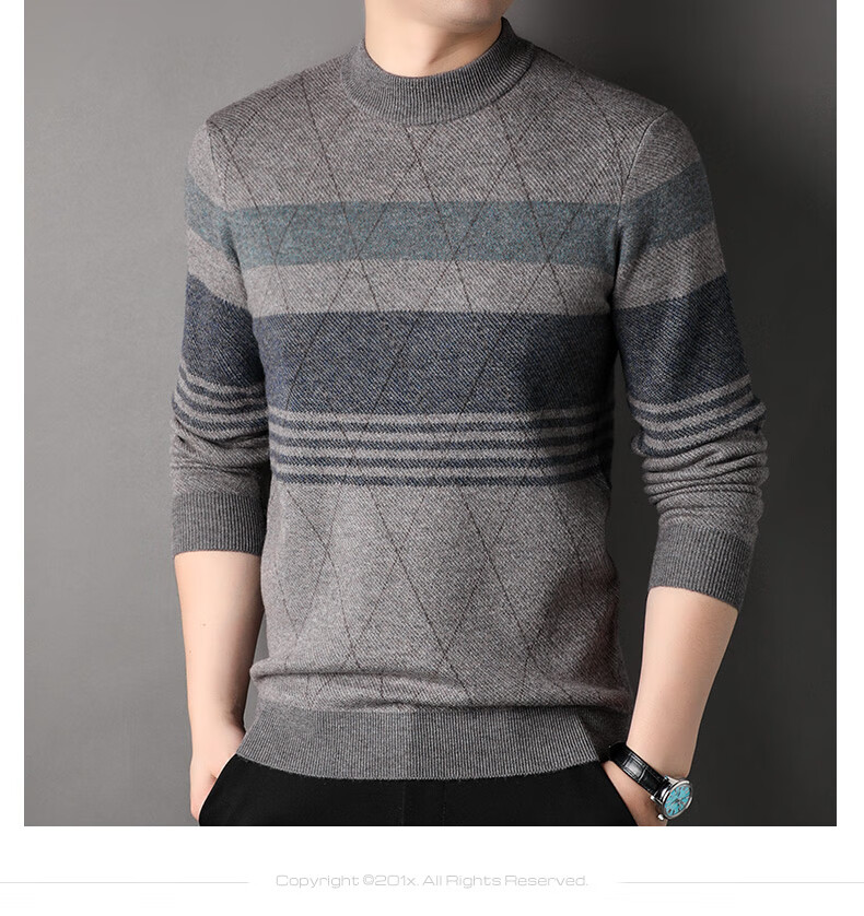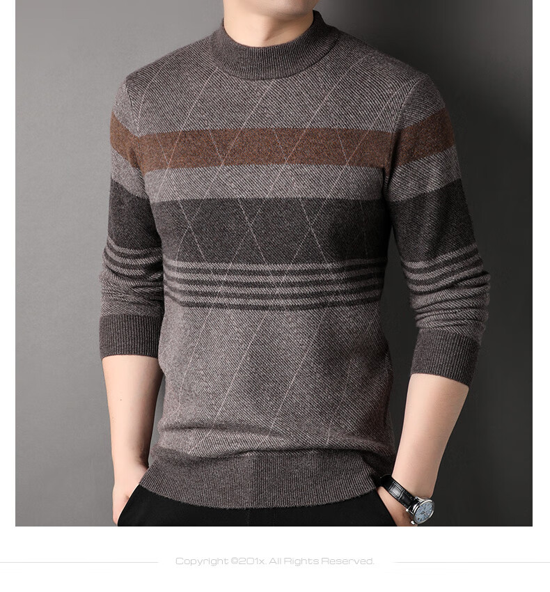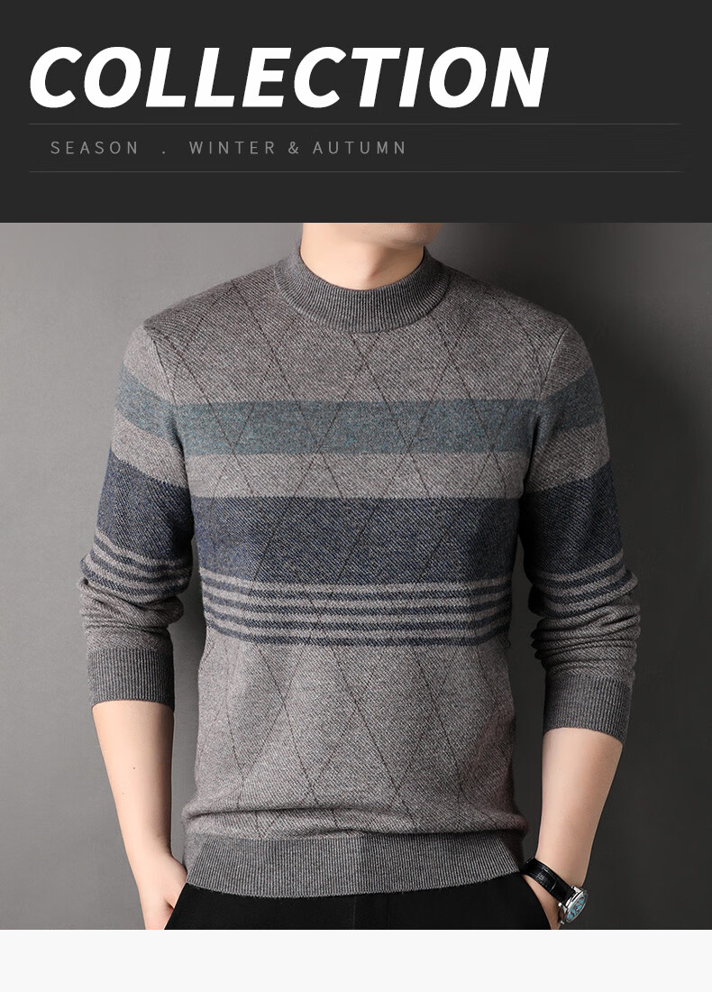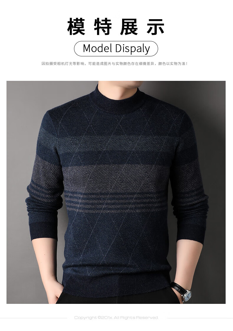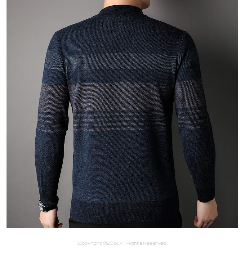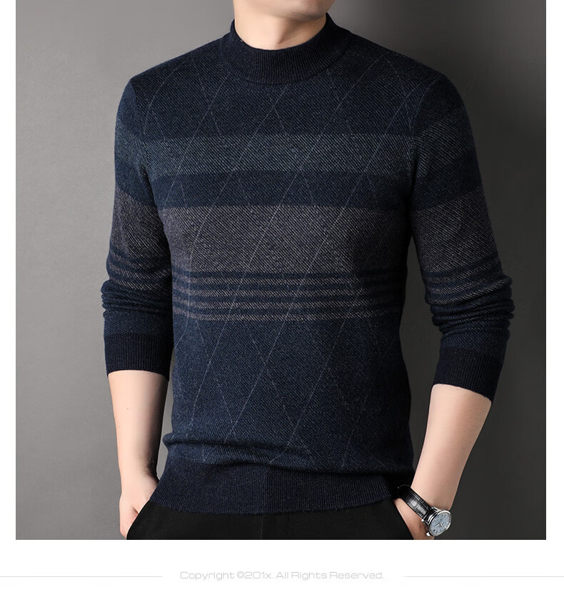 Hengyuanxiang 100% wool sweater men's half turtleneck thickened striped warm sweater 15381691 dark blue 175/92A