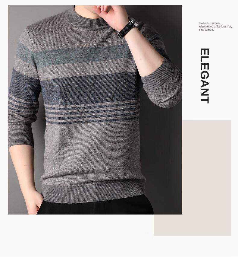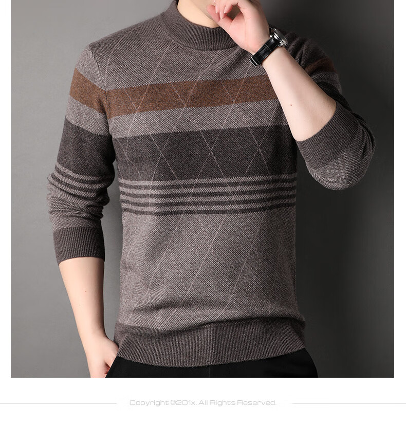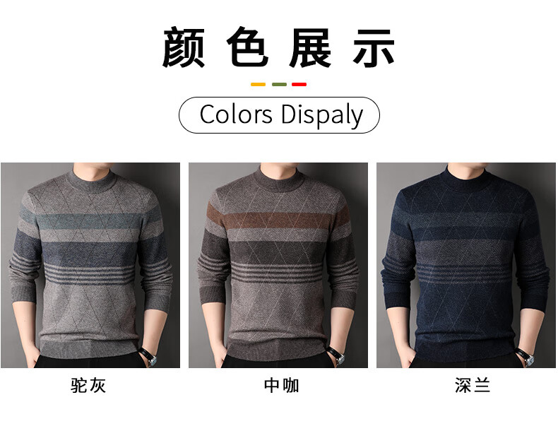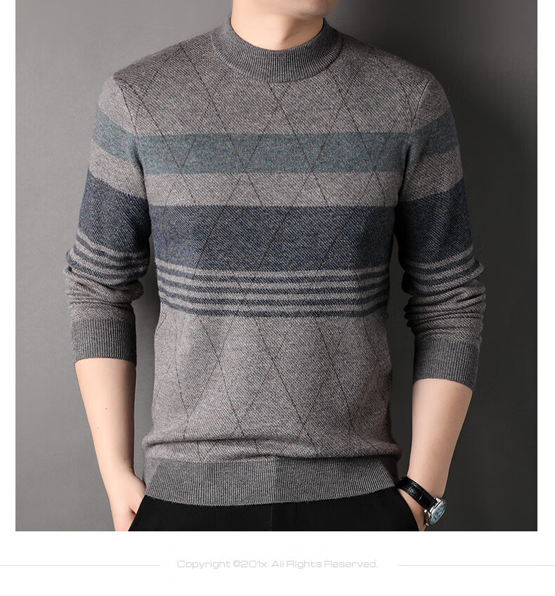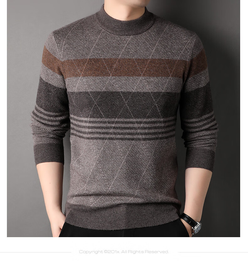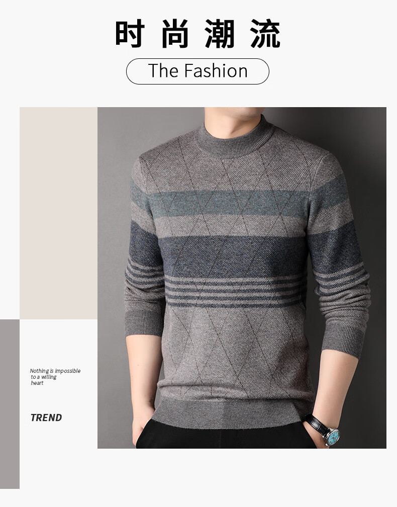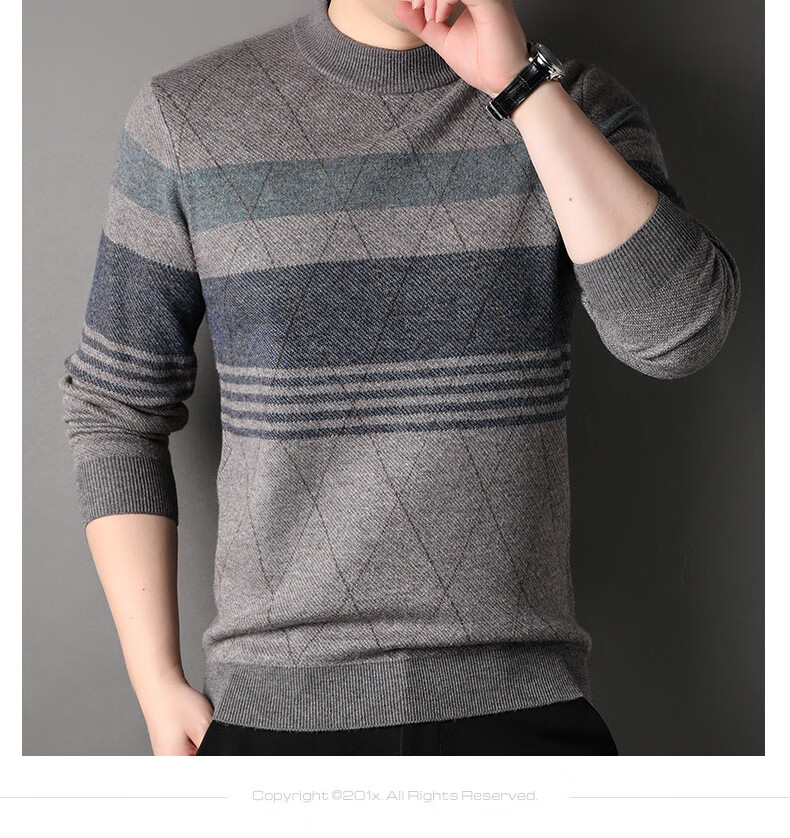 Hengyuanxiang 100% wool sweater men's half turtleneck thickened striped warm sweater 15381691 dark blue 175/92A