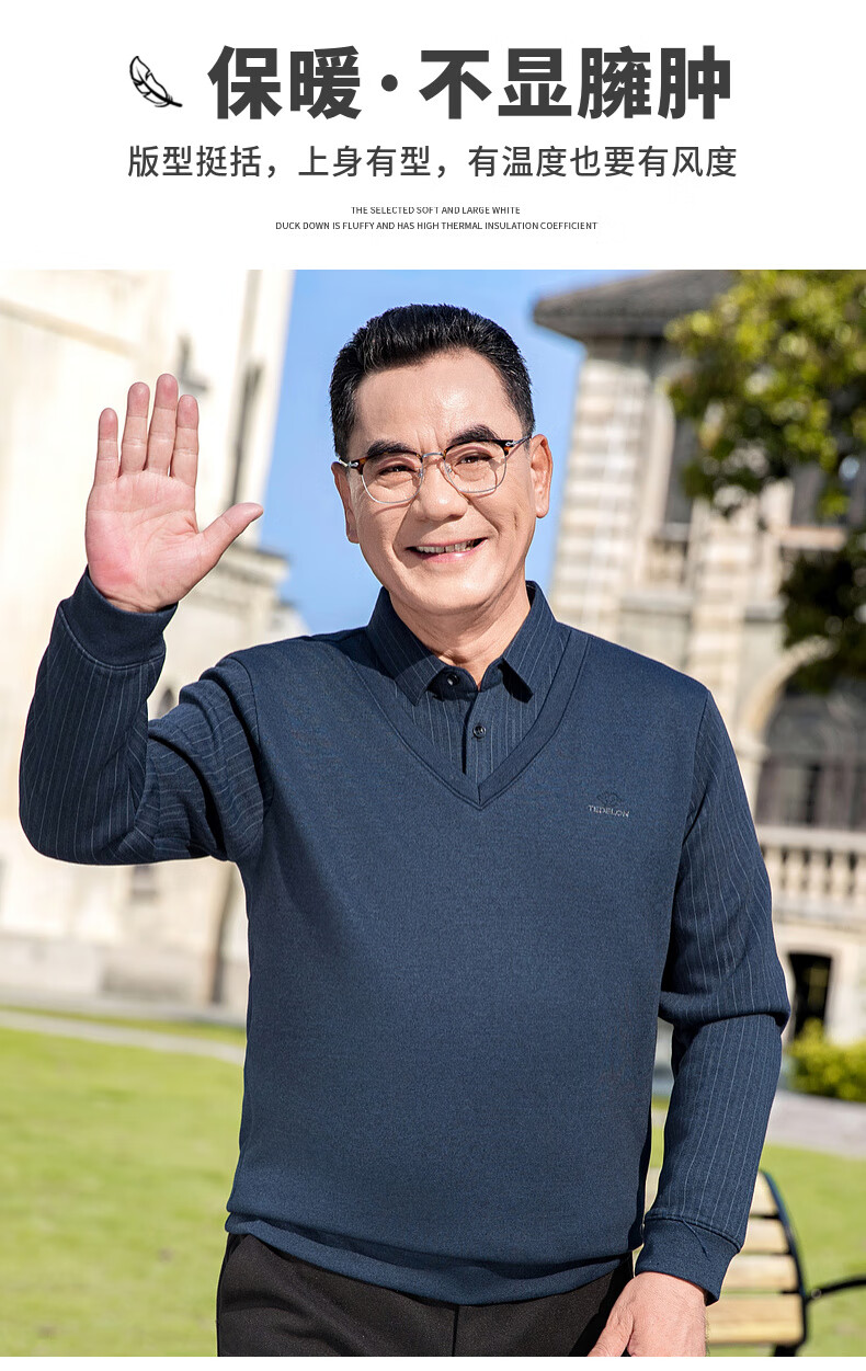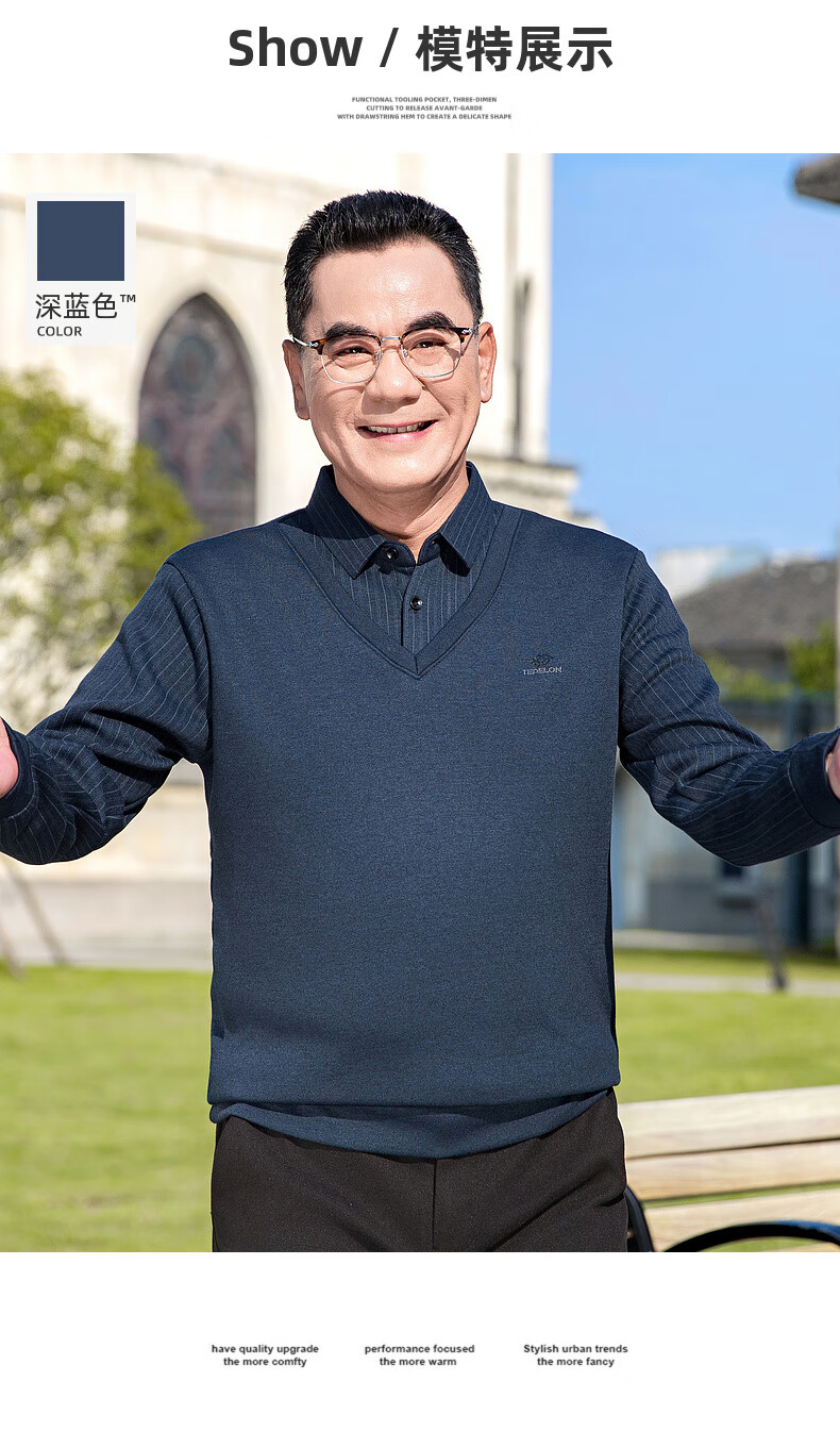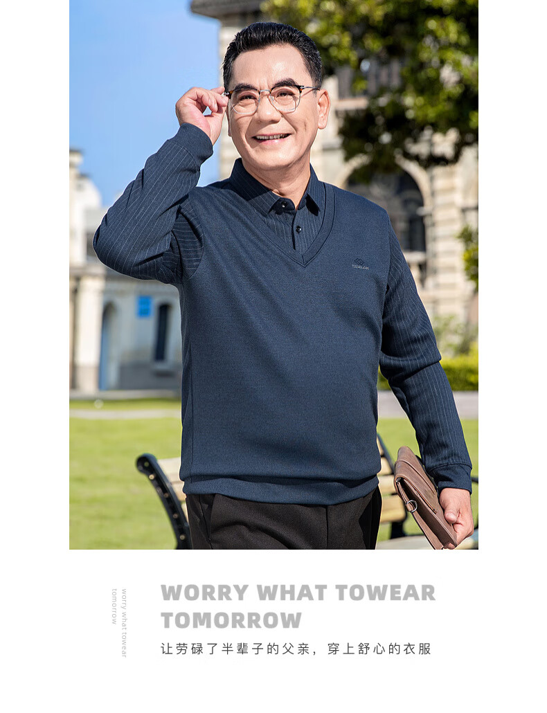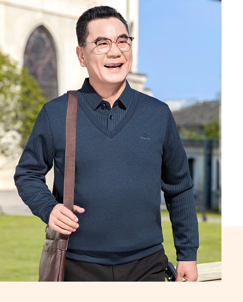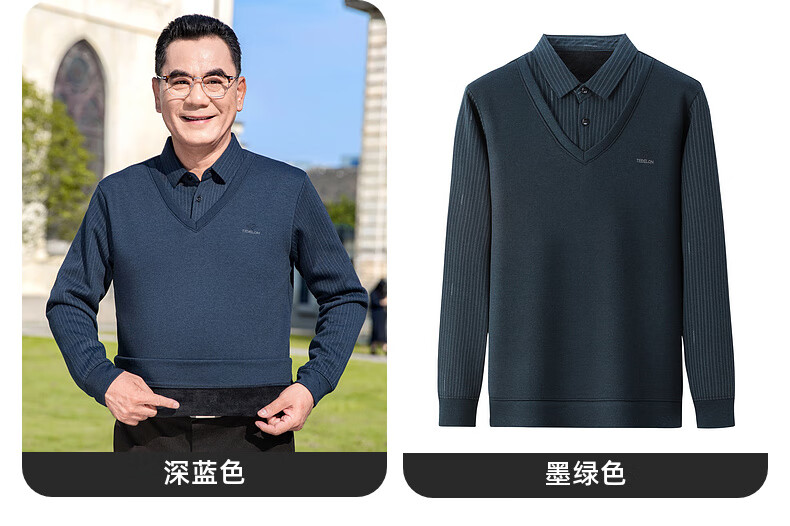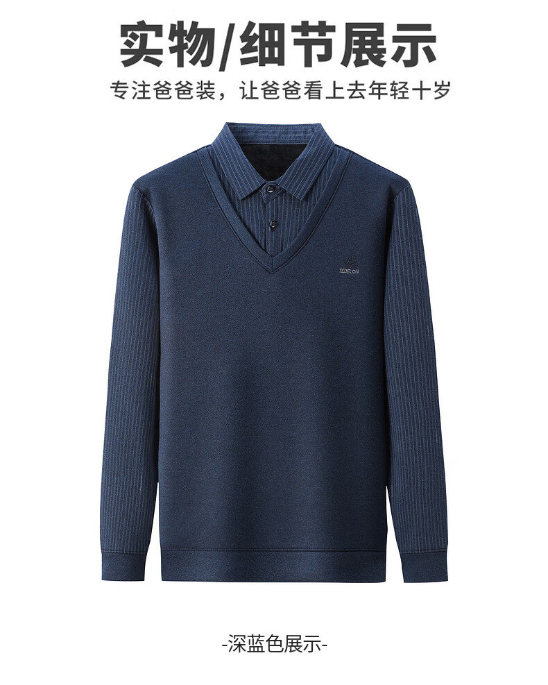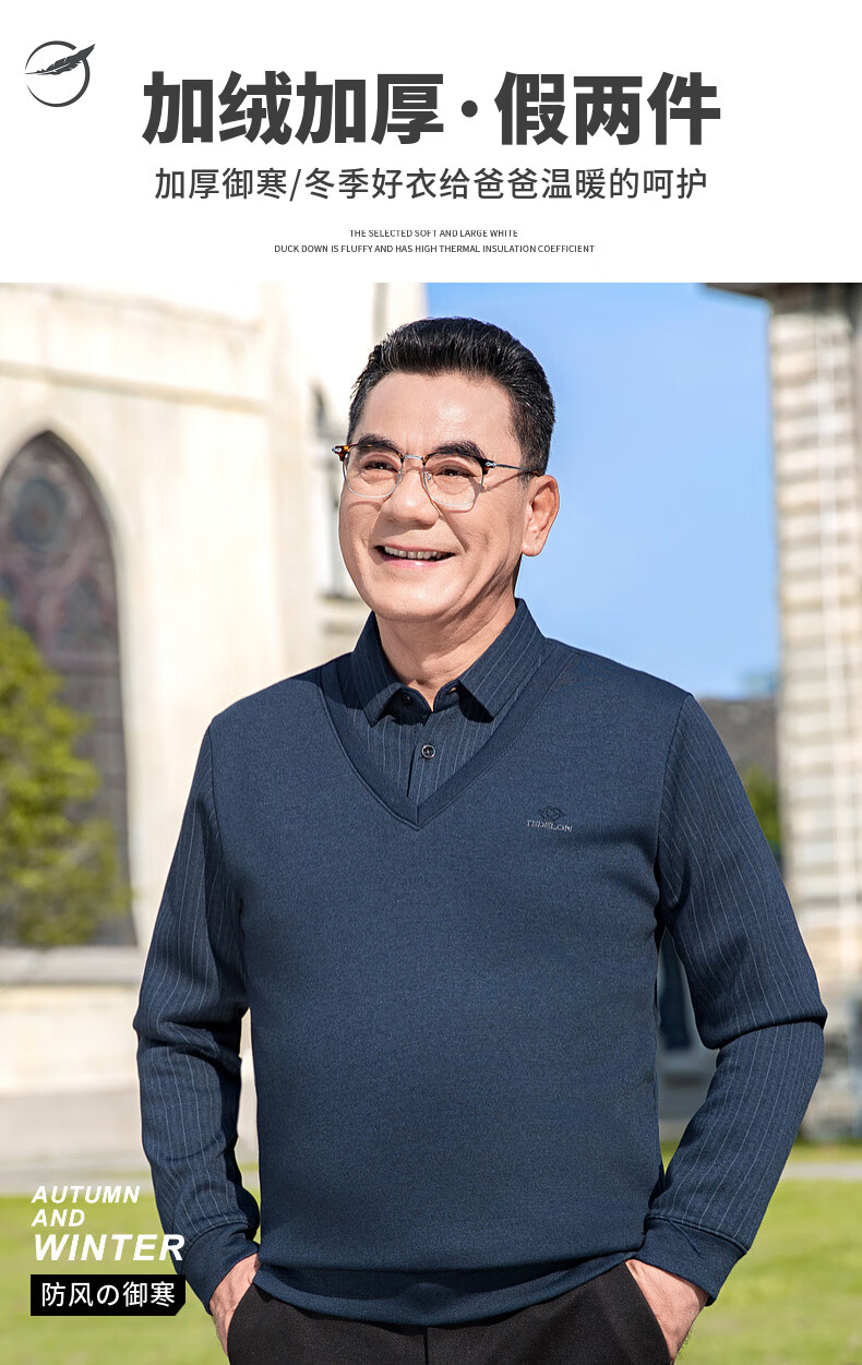 Baocai Sheep Dad winter knitted sweater men's fake two-piece velvet thickened bottoming sweater middle-aged and elderly men's cold-proof top