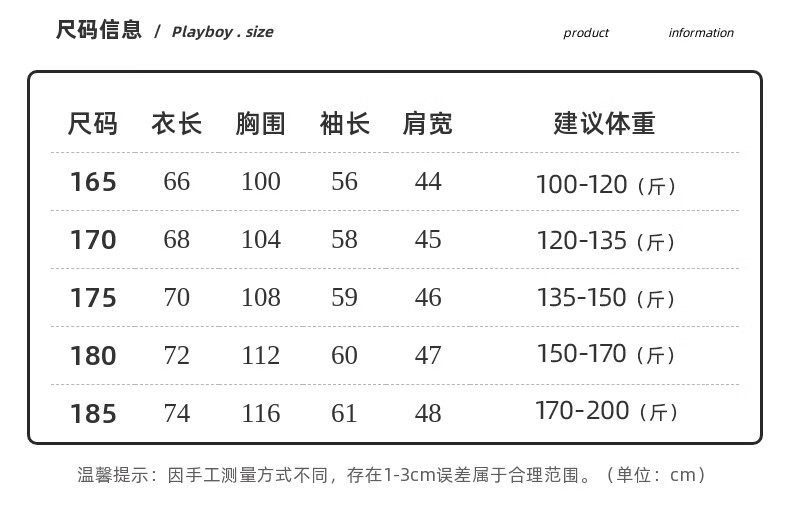 China (cm) 165 / 88-90 170 / 96-98 175 / 108-110 180 / 118-122 185 / 126-130