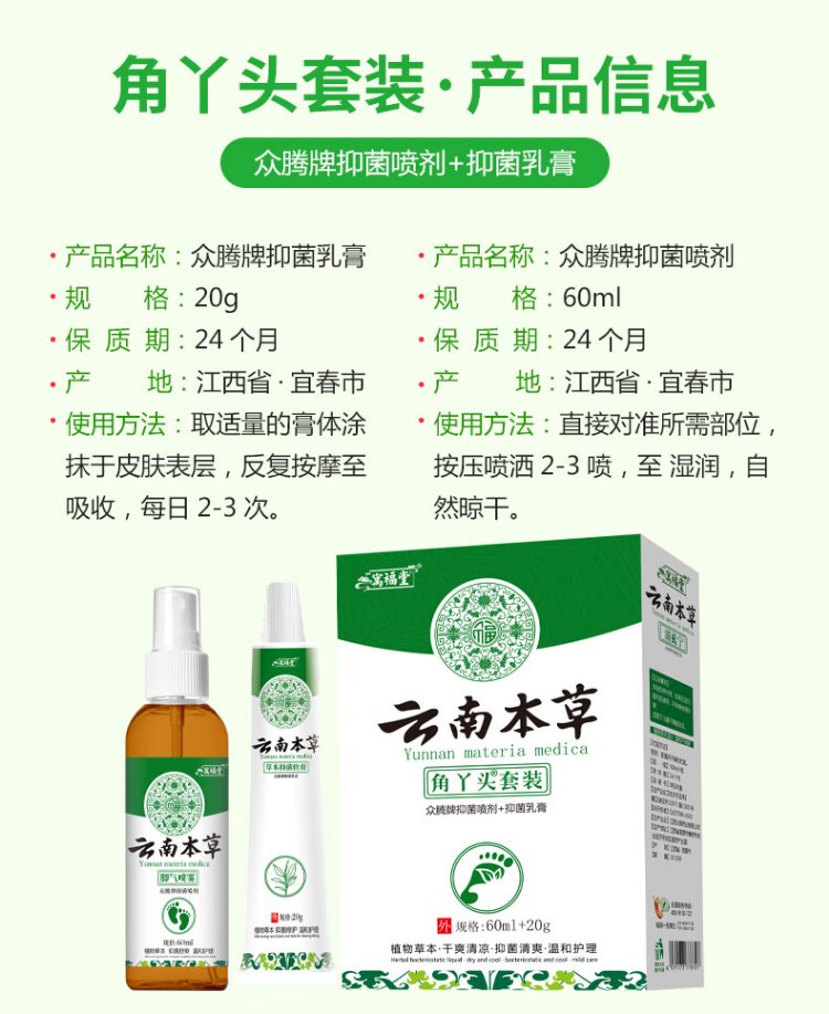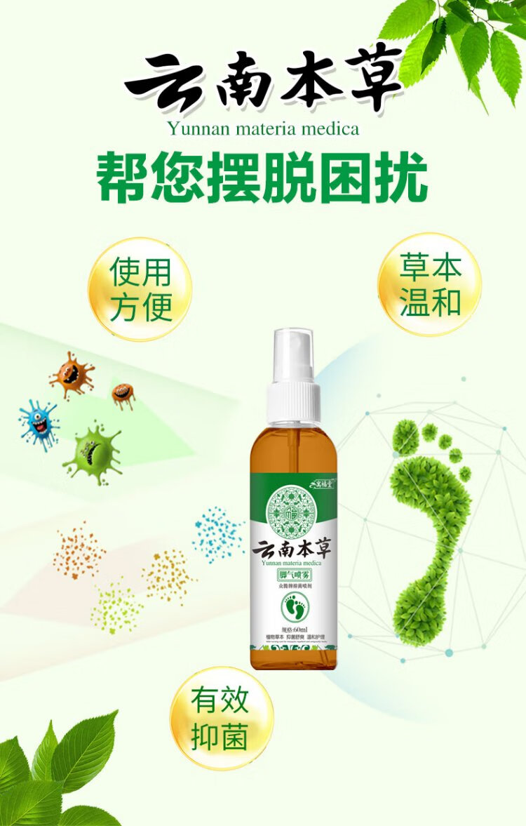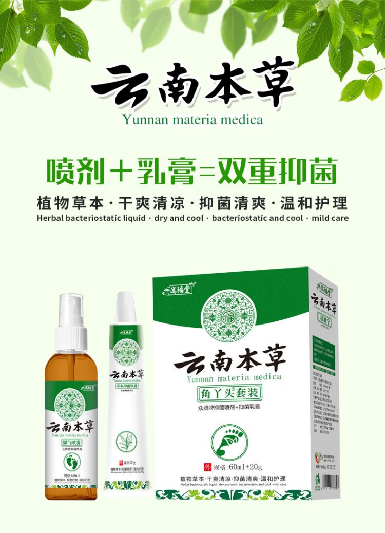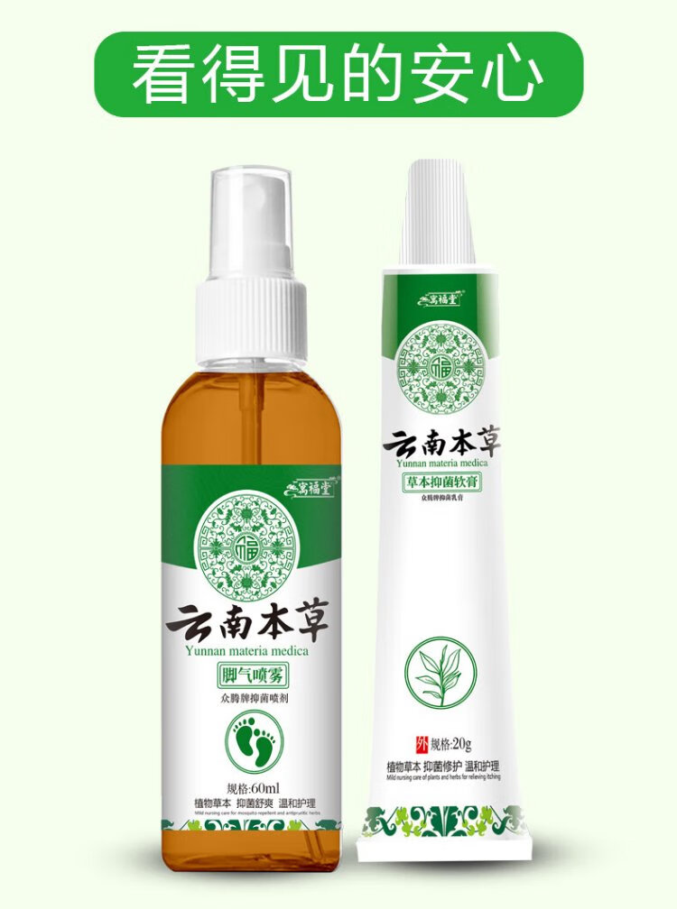 Yunnan herbal athlete's foot, smelly feet, itchy peeling feet, fungal infection spray 60ml + cream 20g skin antibacterial agent set