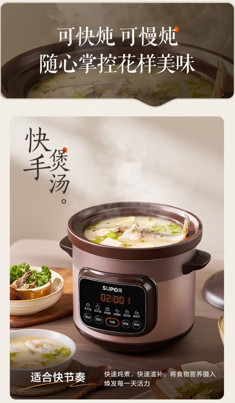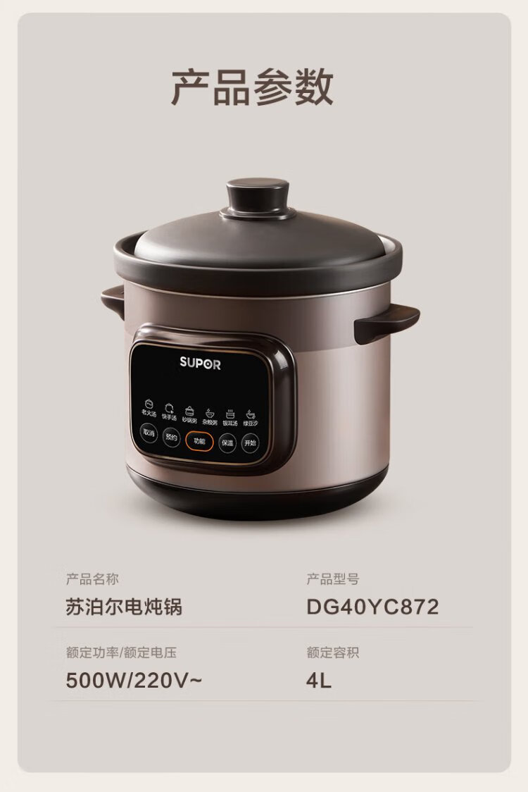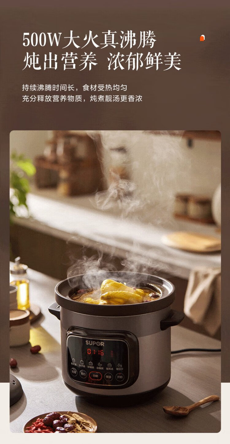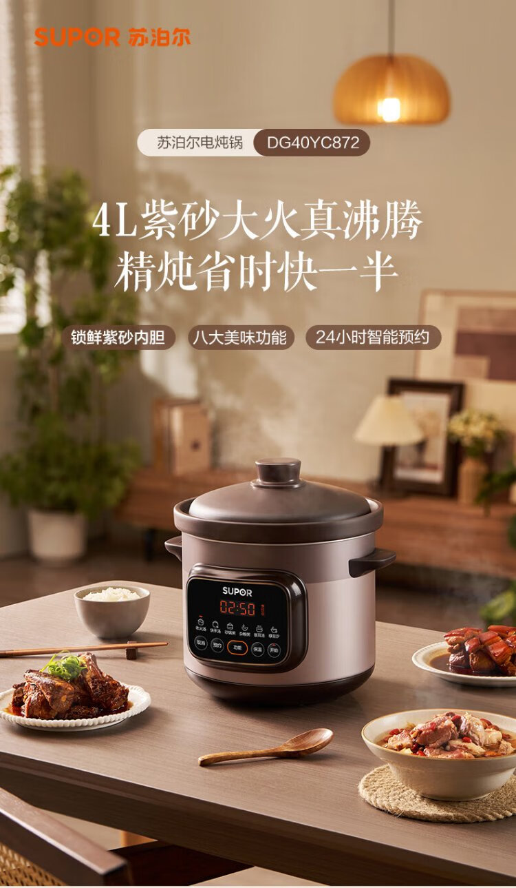 SUPOR quick-stewing electric stew pot, electric casserole, electric stew pot, soup pot, purple casserole, bird's nest stew pot, porridge cooker, soup pot, porridge electric cooker DG40YC872 multi-function pot