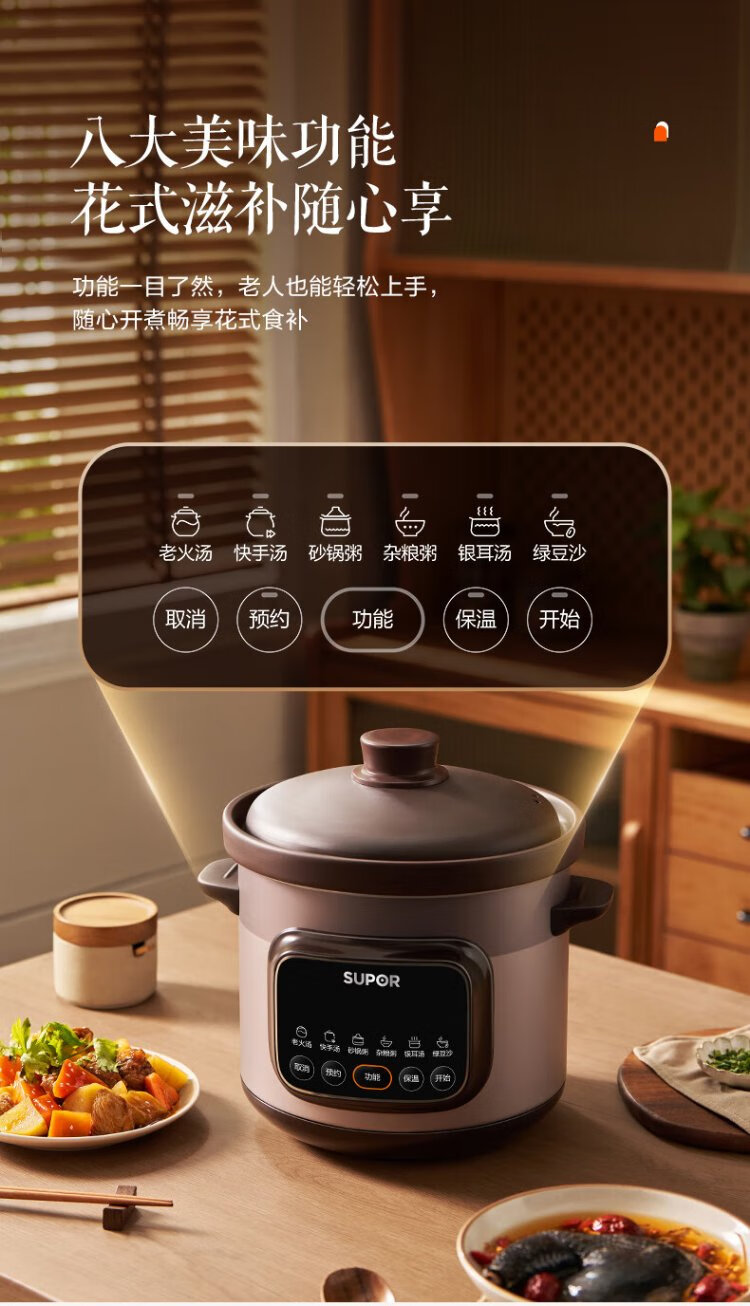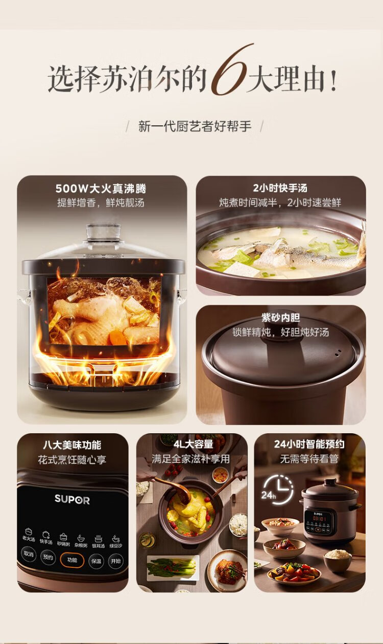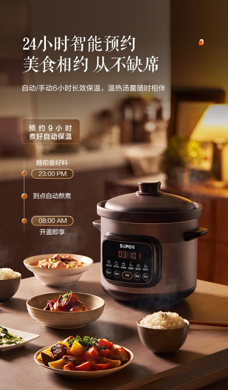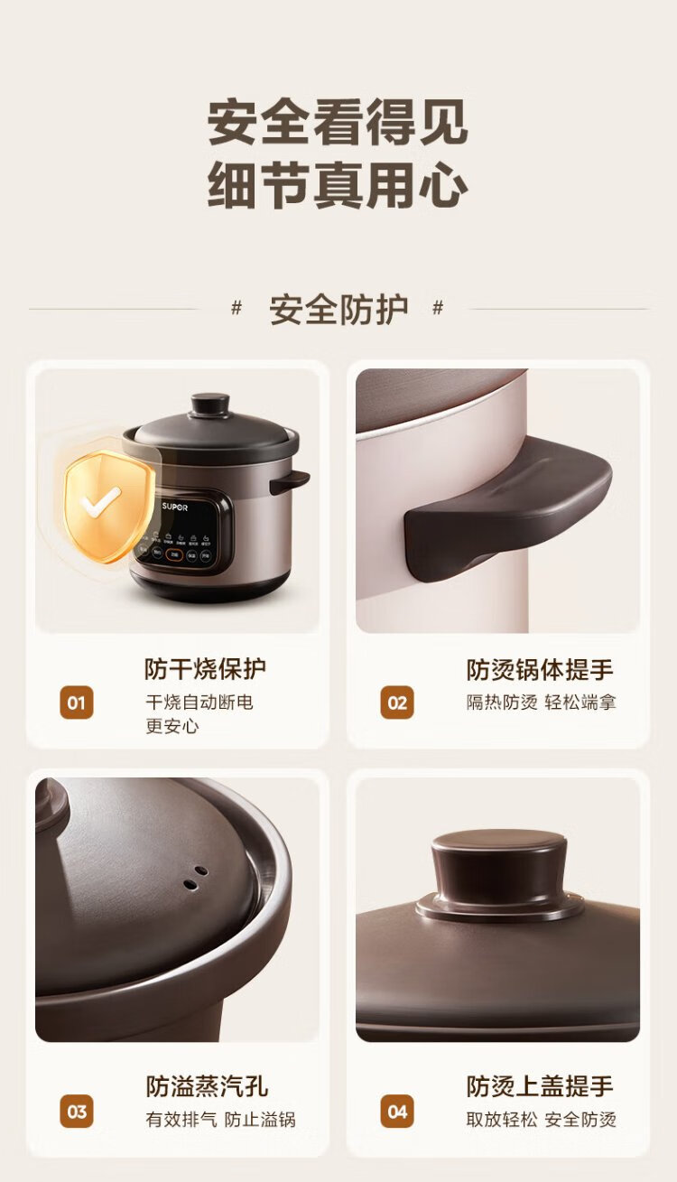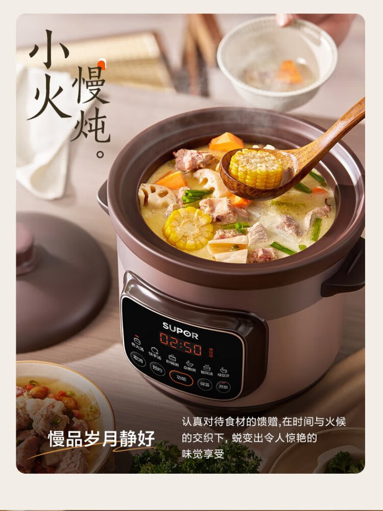 SUPOR quick-stewing electric stew pot, electric casserole, electric stew pot, soup pot, purple casserole, bird's nest stew pot, porridge cooker, soup pot, porridge electric cooker DG40YC872 multi-function pot