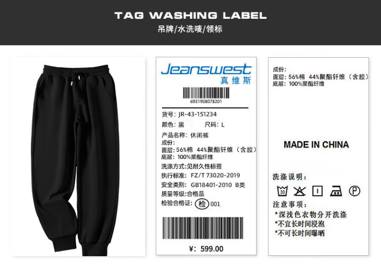 Jeanswest men's trousers autumn style youth Chinese style 320g heavy cotton casual trousers boys' national fashion versatile leggings