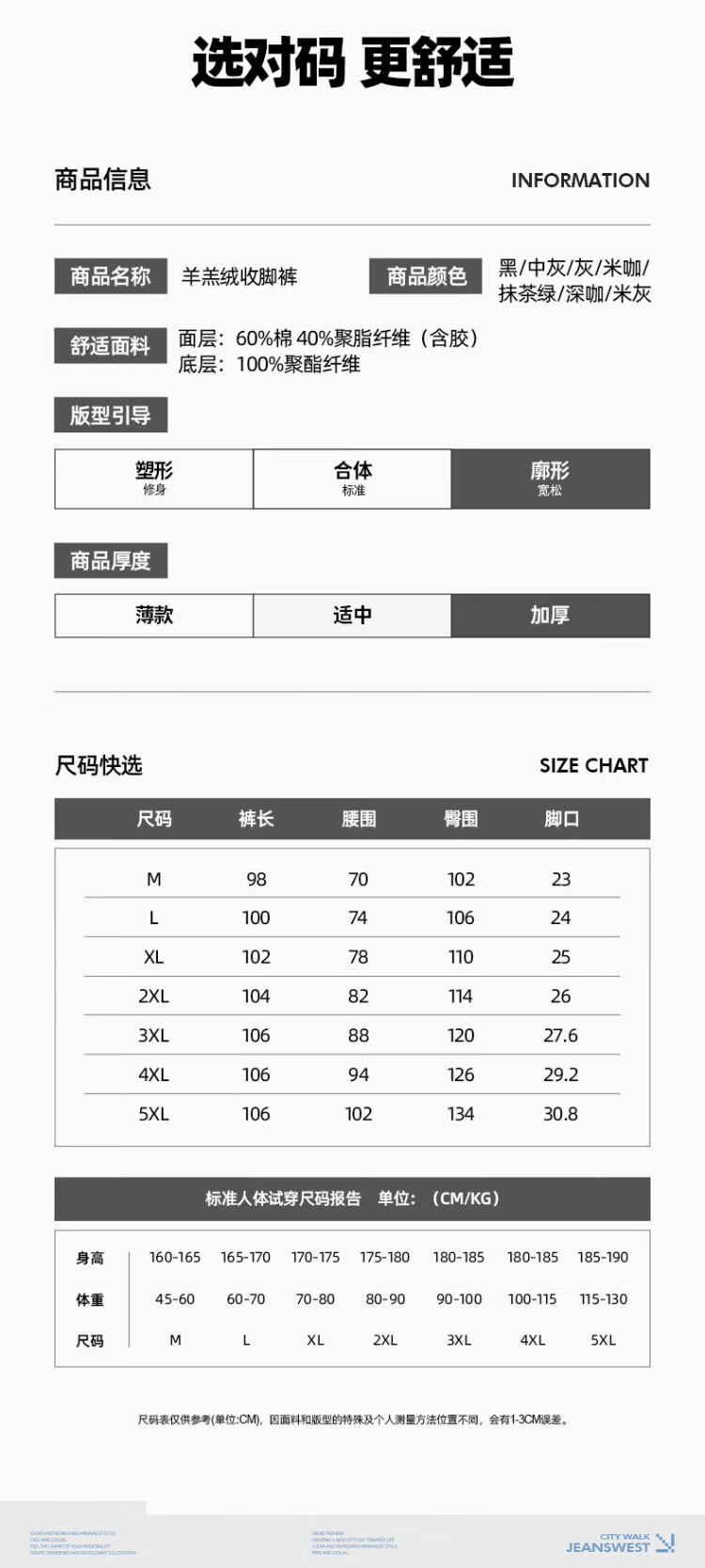 Outseam (cm) 99 cm 101.5 cm 104 cm 106.5 cm 109 cm