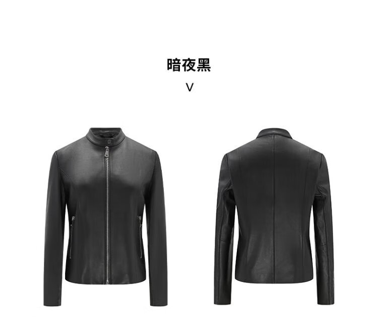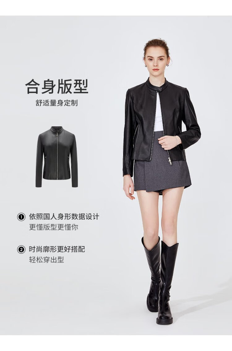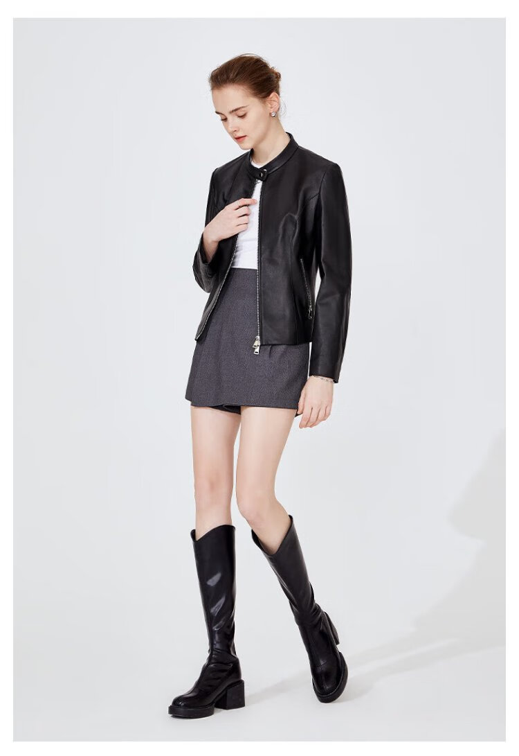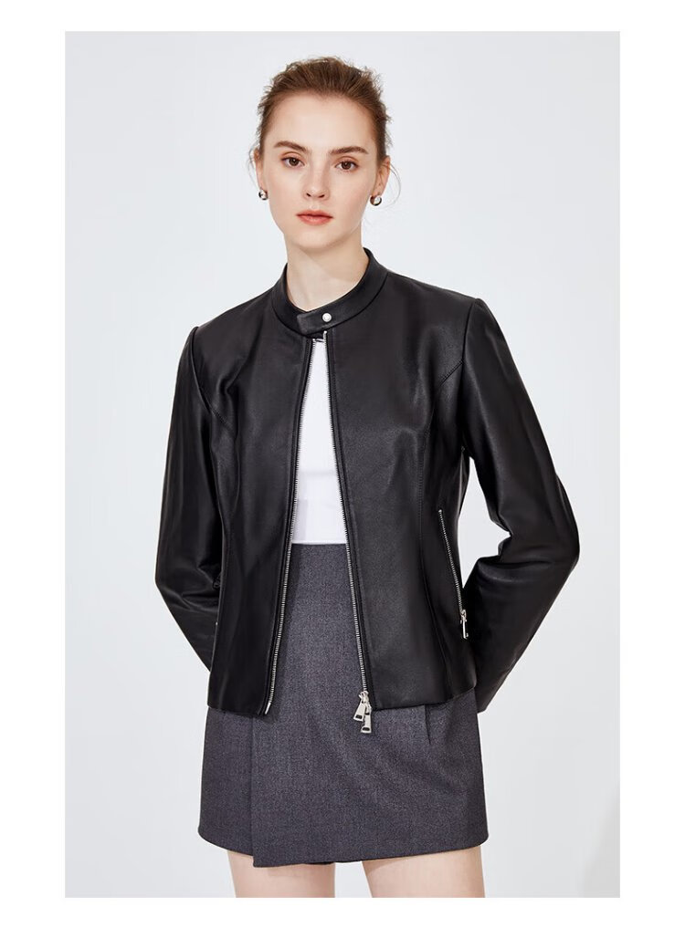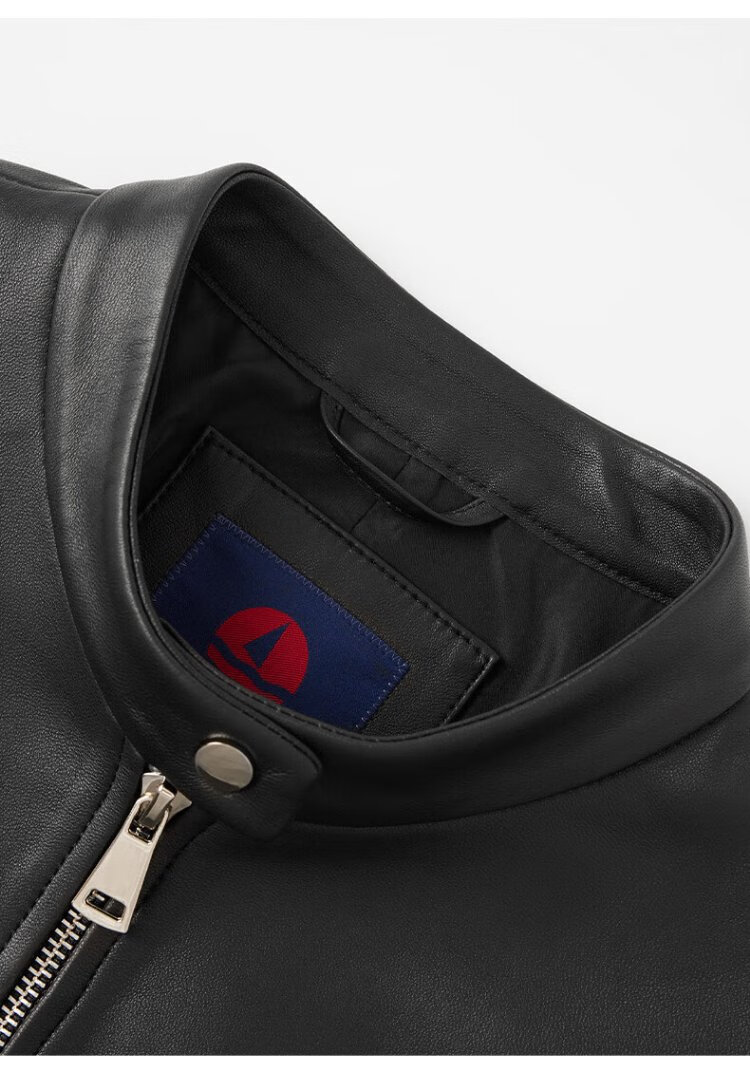 Navigare意大利小帆船女士短装单皮衣立领机车风修身外套2336703509 XL