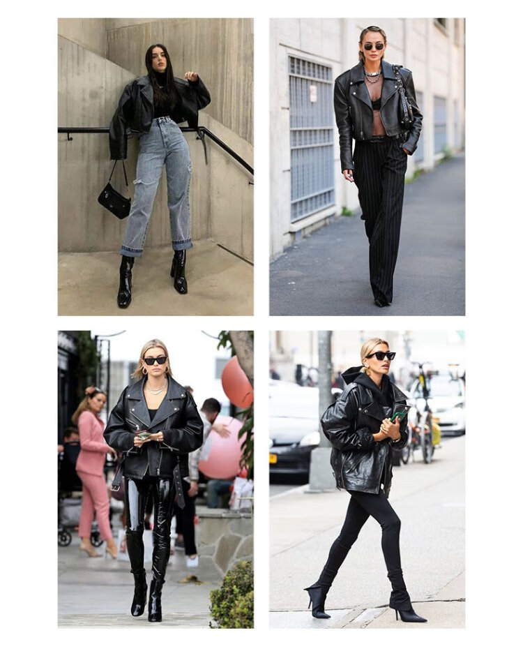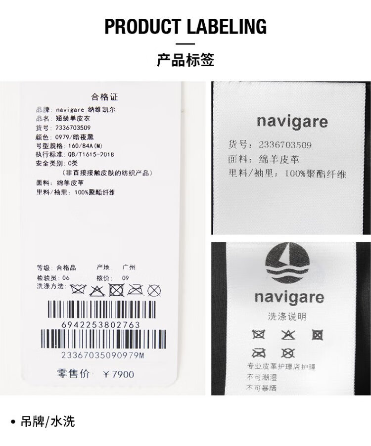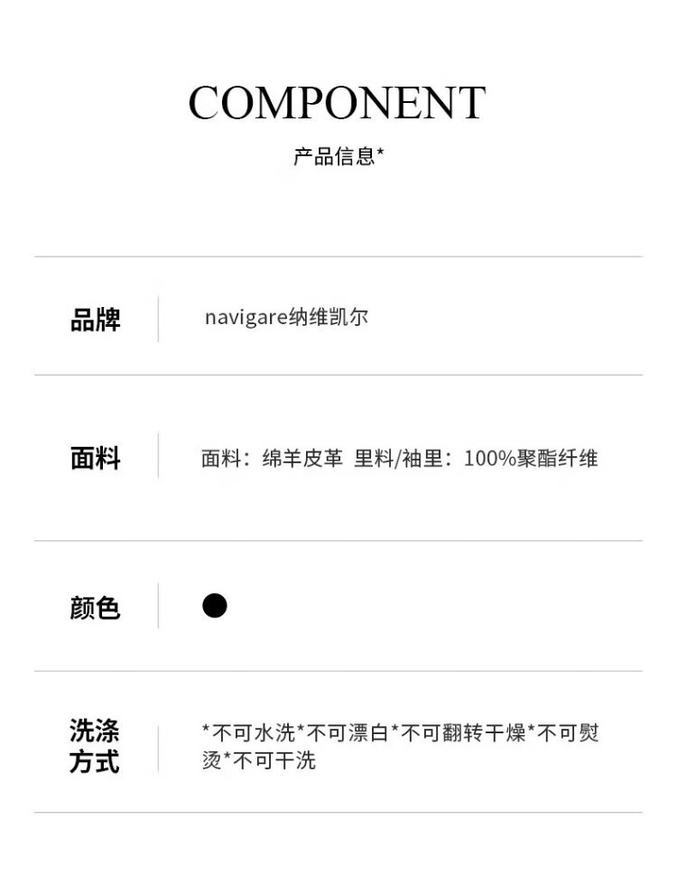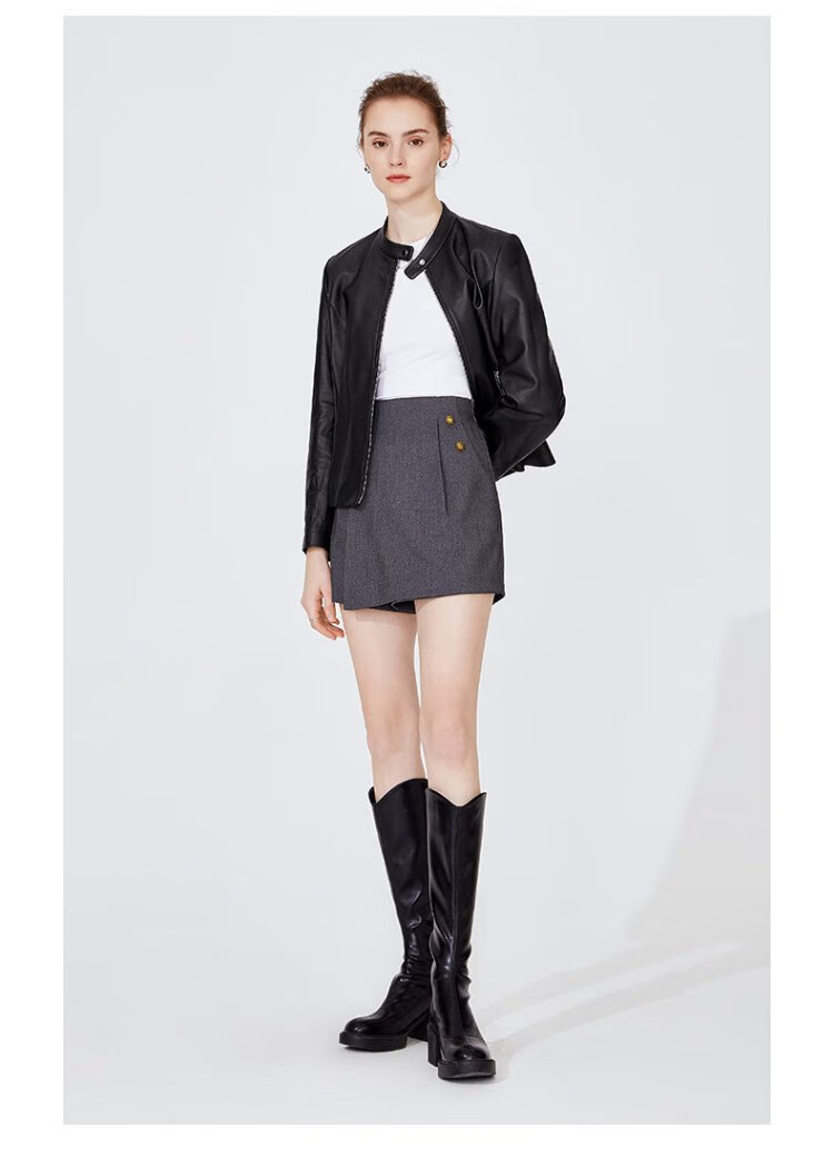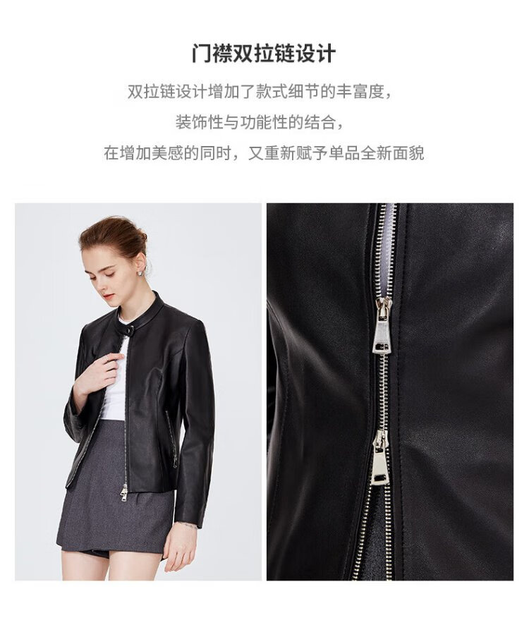Navigare意大利小帆船女士短装单皮衣立领机车风修身外套2336703509 XL