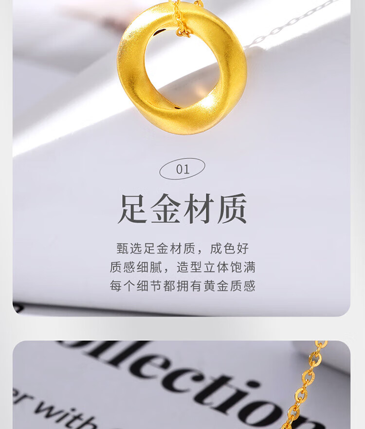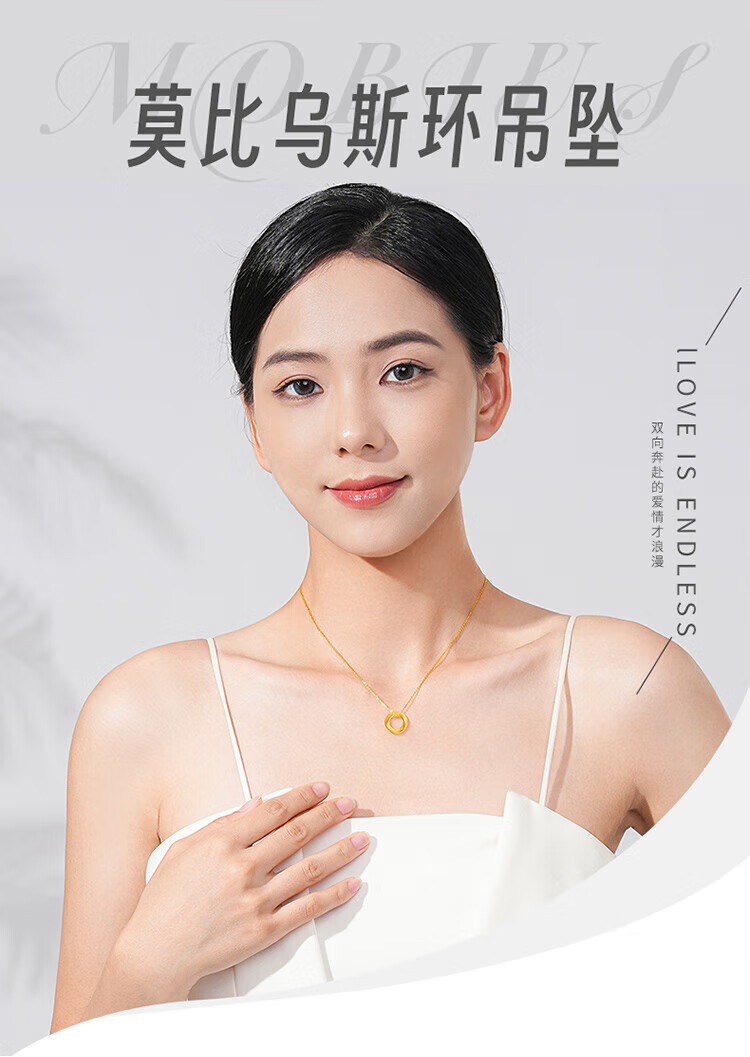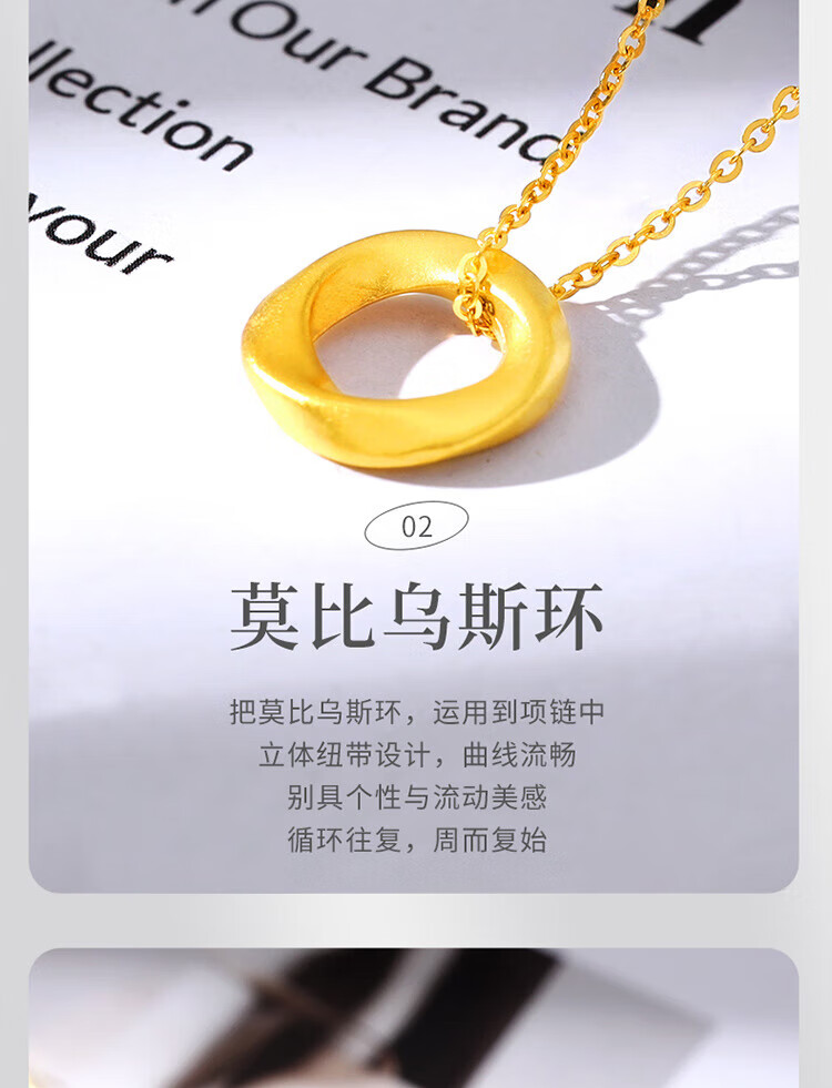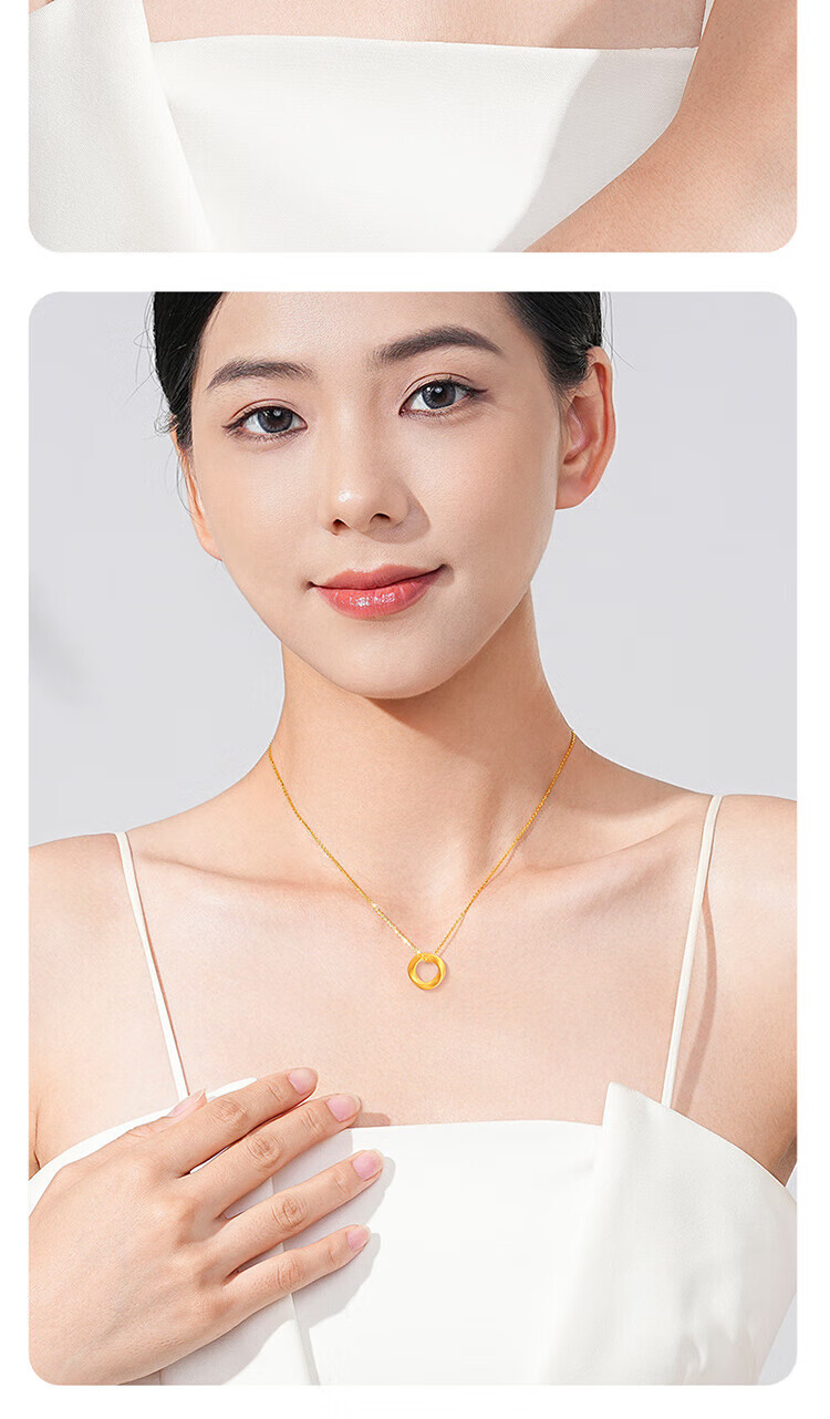 Chinese jewelry birthday gift for girlfriend gold pendant women's gold Möbius ring pendant necklace set chain clavicle chain