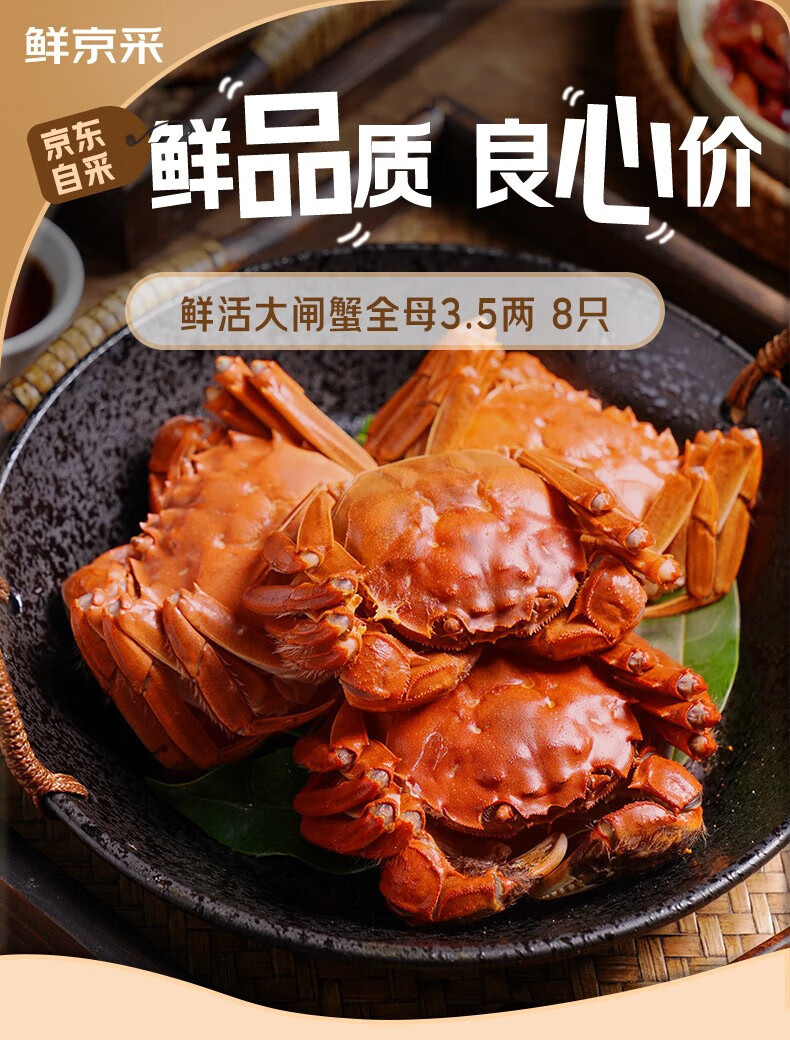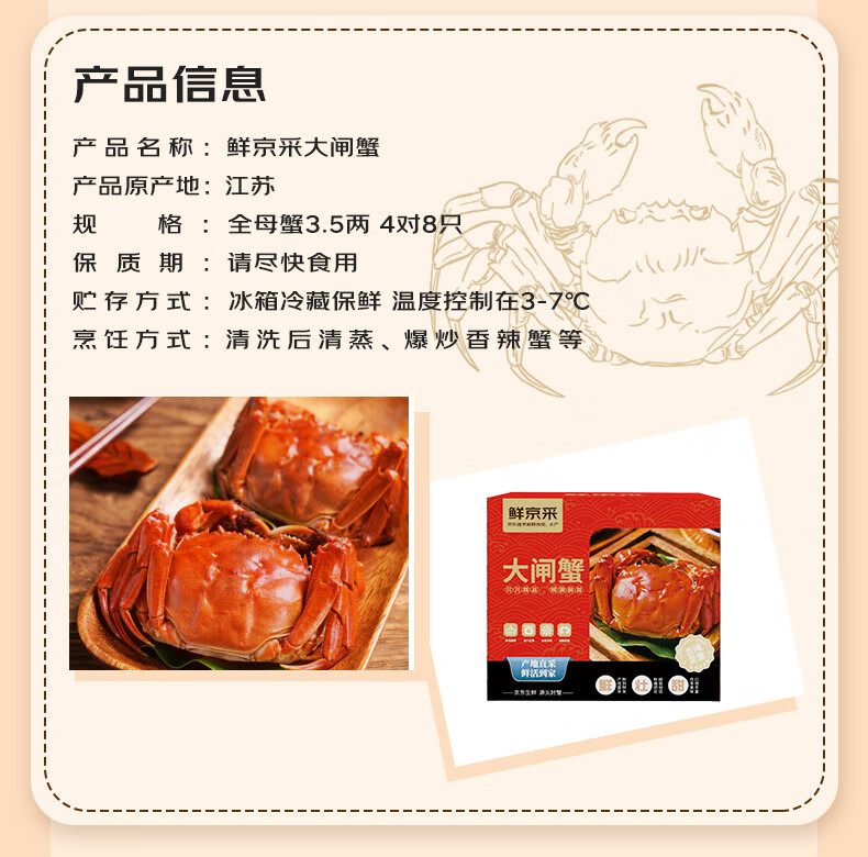Live crabs, fresh hairy crabs from Xianjing, 3.5 taels of whole female crabs, 4 pairs of 8 pieces, full weight without rope, crabs, river crabs, fresh gift box
