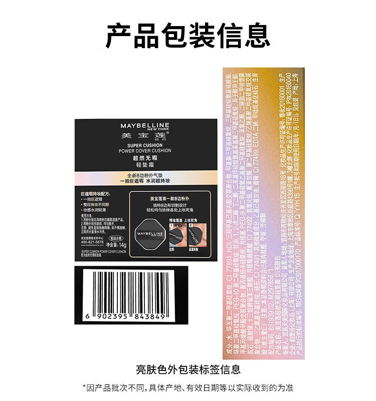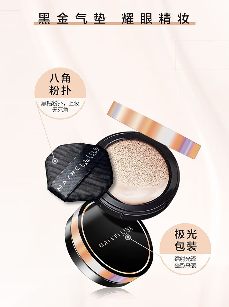 Maybelline Transcendence Flawless Light Cushion Black Gold Air Cushion with Refill 01 Brightening Skin Concealer and Moisturizing Birthday Gift for Women