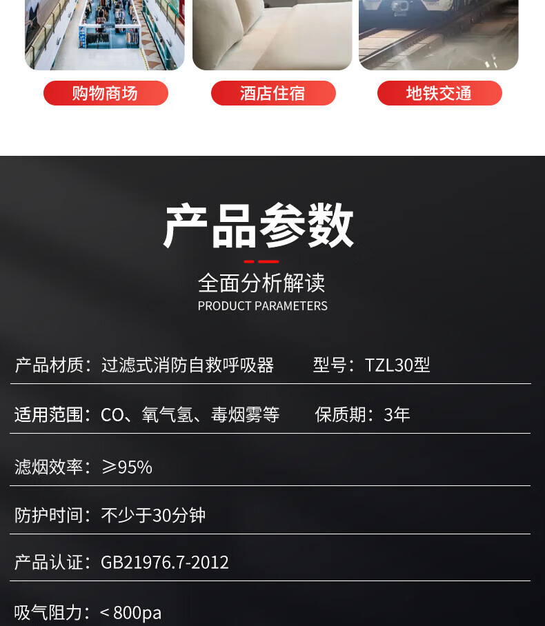 Gui'an filtering self-rescuing respirator breathing mask gas mask fire-proof and smoke-proof fire-fighting mask TZL30