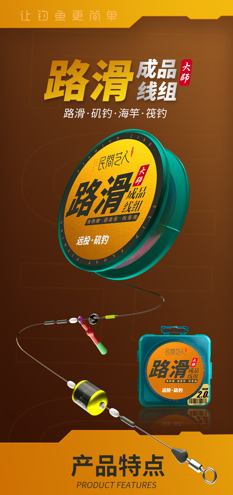 Folk artist road sliding line set finished product rocky pole sliding drift long-range casting fishing group Lua line group special large object fishing line set