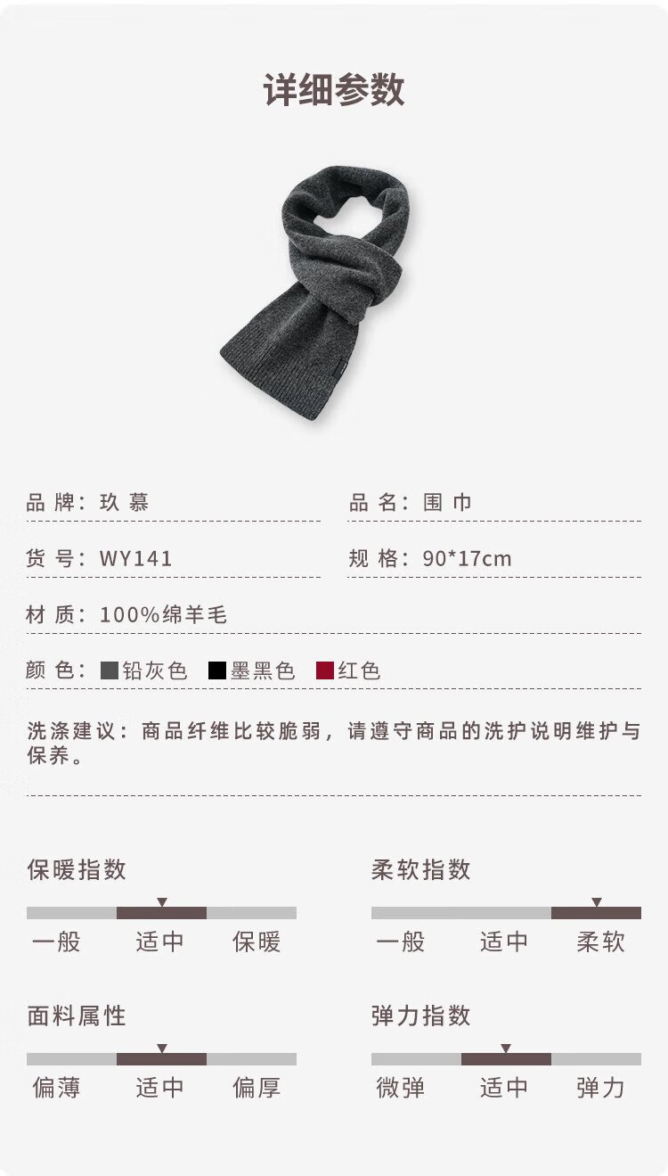 JIUMU pure wool scarf men's winter men's scarf autumn and winter warm scarf Christmas boys birthday New Year gift