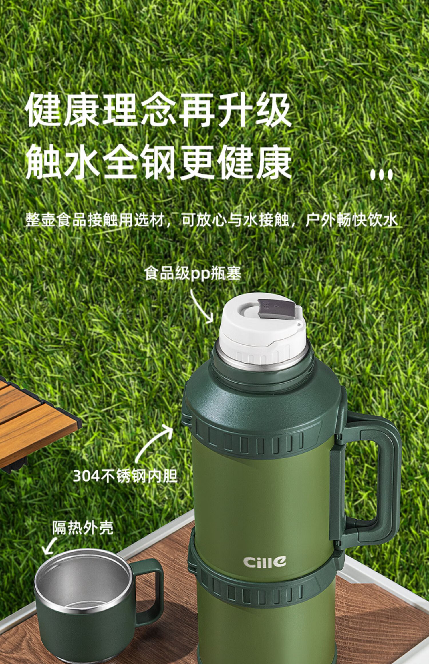 Xile large-capacity thermal kettle for men and women high-looking outdoor travel kettle thermos 304 stainless steel water bottle
