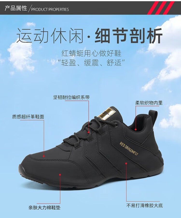 Red Dragonfly men's shoes, leather-covered sports casual shoes, men's dad shoes, height-increasing shoes for men C0TT04741