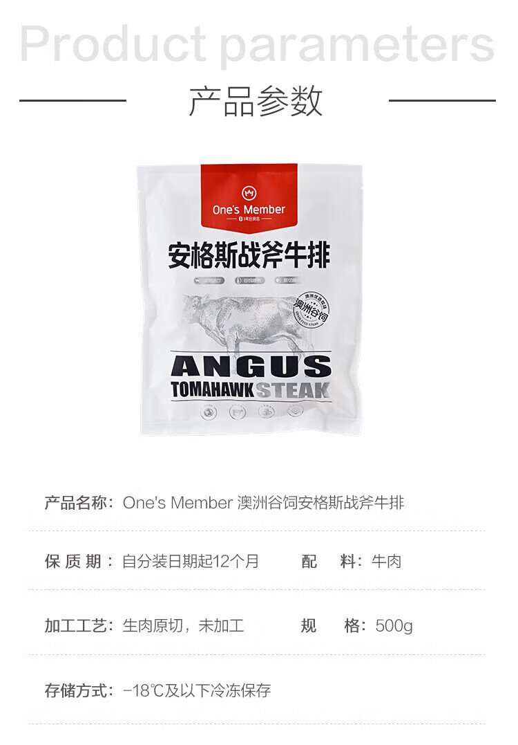 Member Store No. 1 Australian Grain-fed Angus Tomahawk Steak 1Jin Jin is equal to 0.5kg Fresh Beef Grain-fed Original Cut Steak Barbecue Ingredients