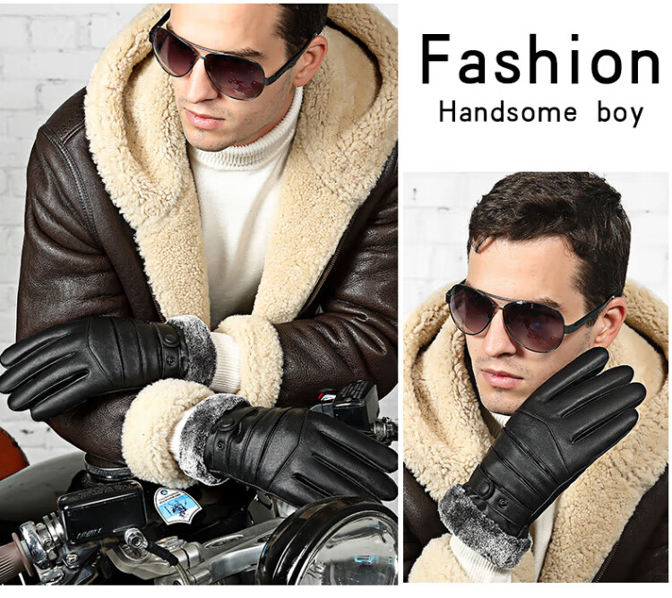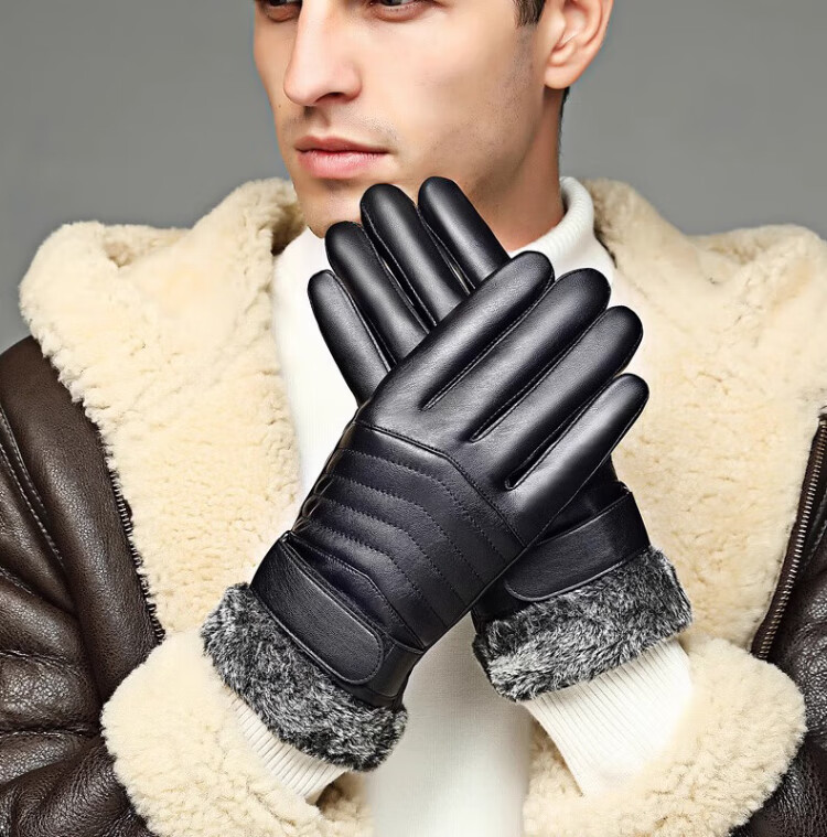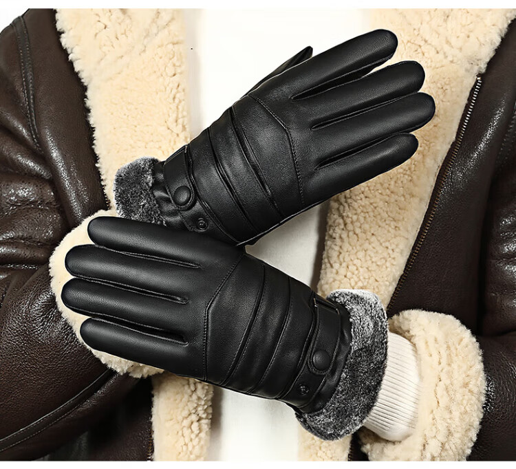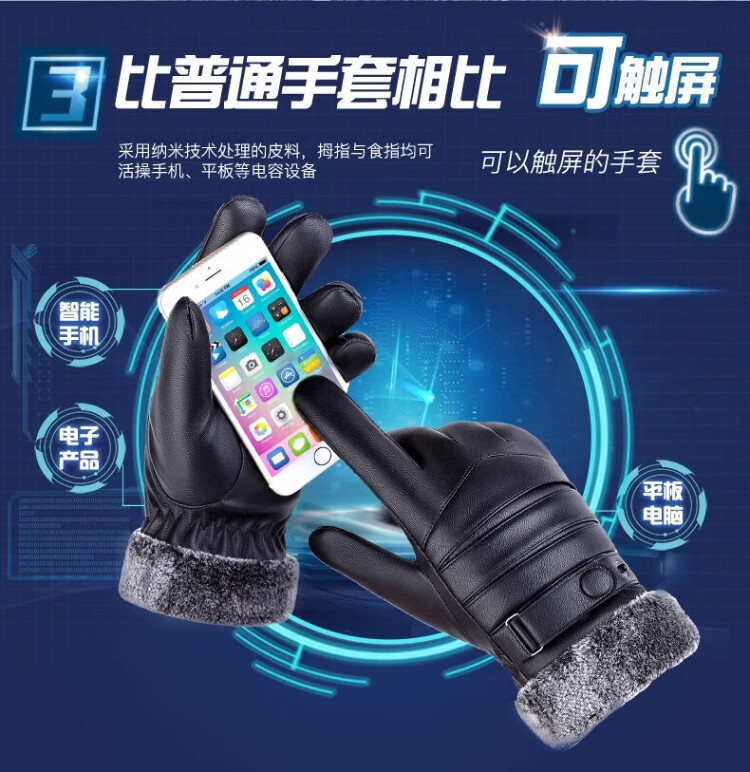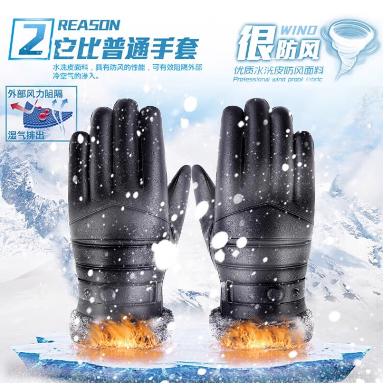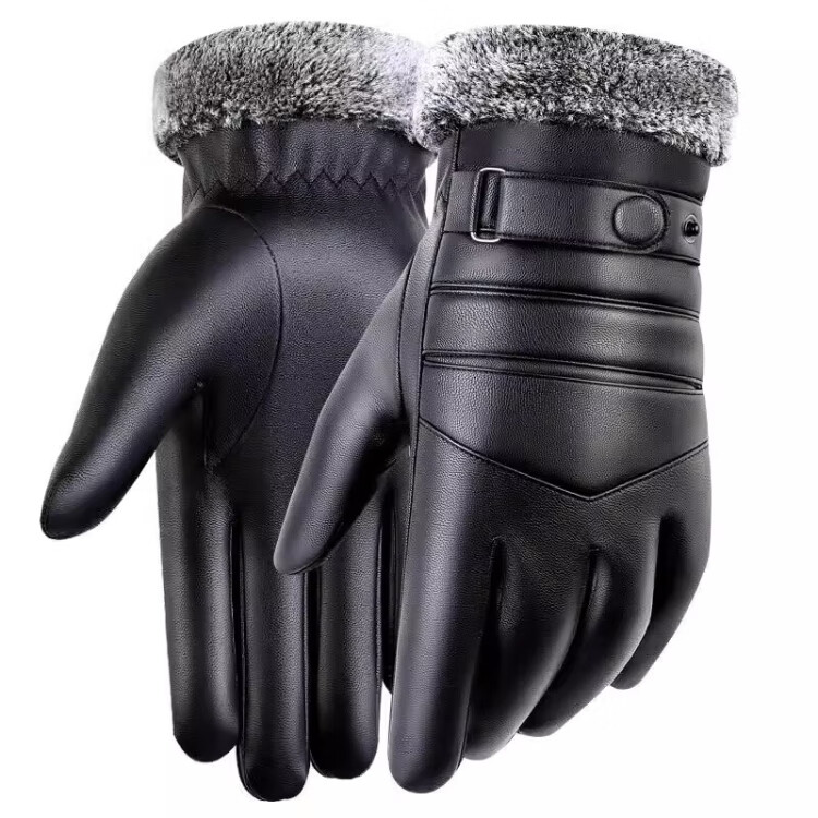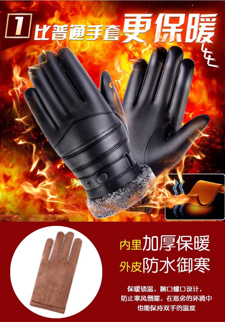 Ousen Cycling Gloves Winter Warm Thickened Velvet Touch Screen Windproof PU Leather Gloves Electric Vehicle Motorcycle Gloves for Men and Women