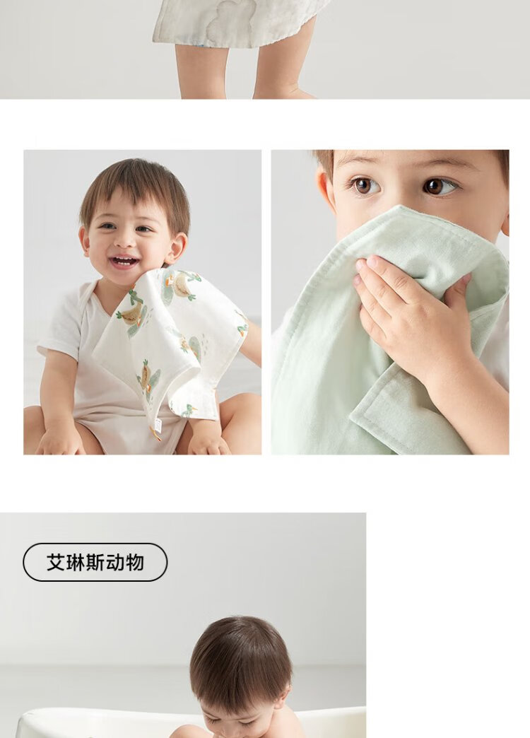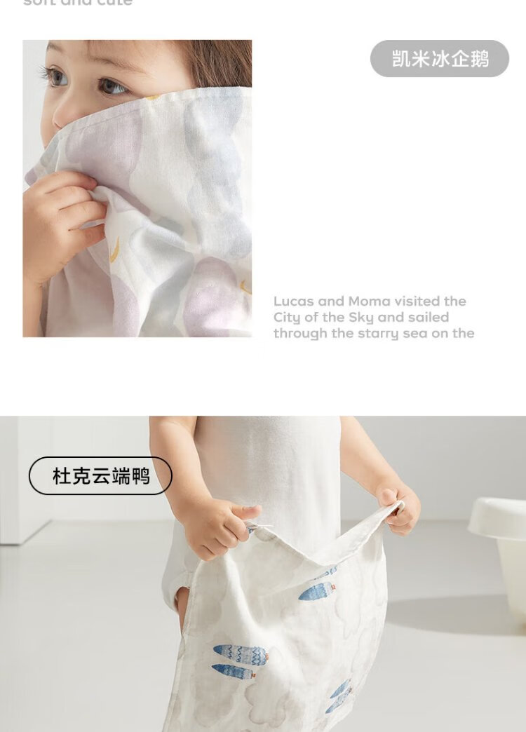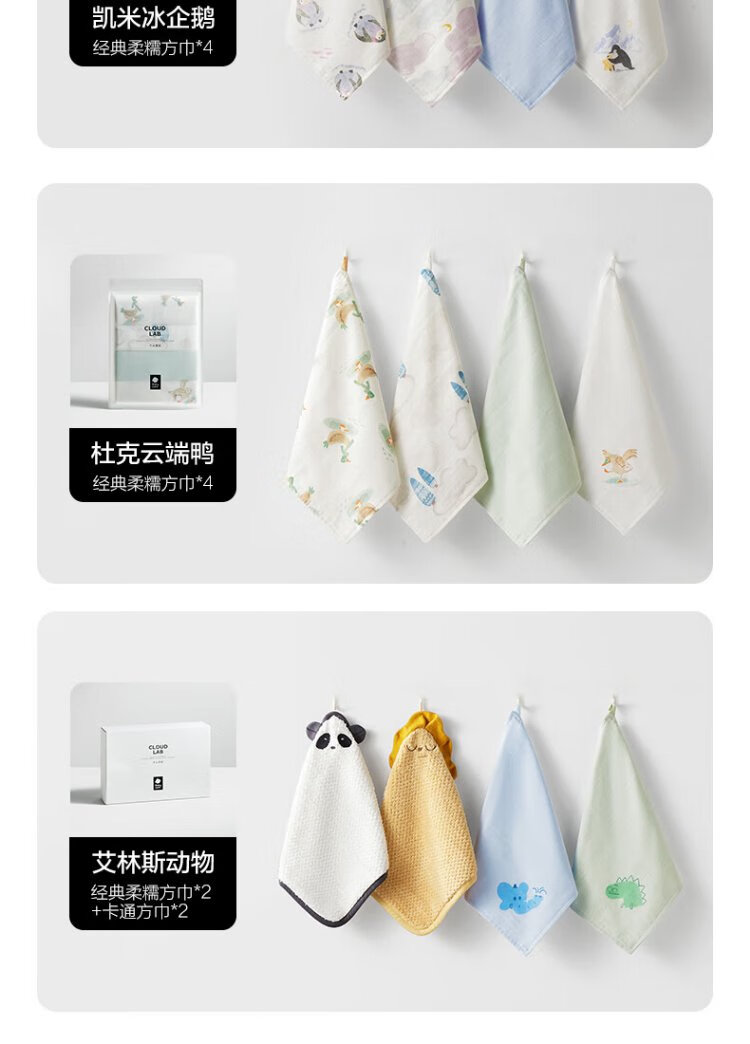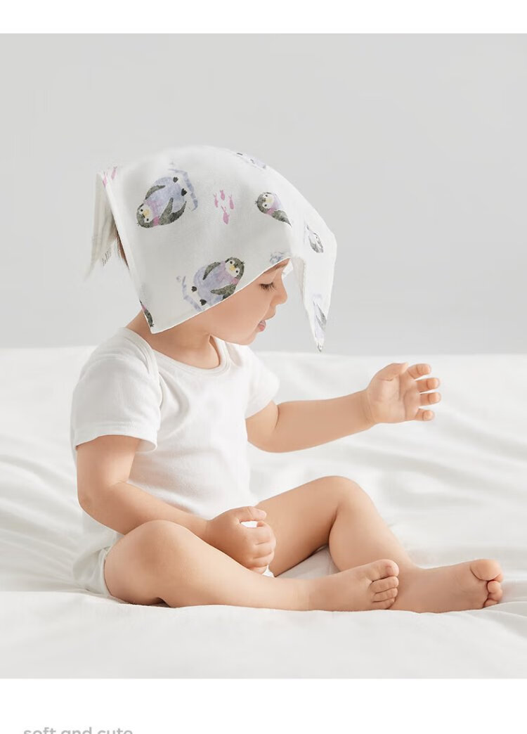 Babycare baby face towel small square towel super soft pure cotton saliva towel cotton kemi ice penguin 4 pack 30*30