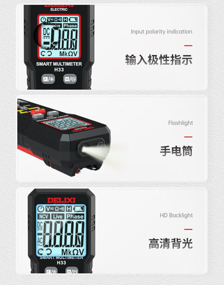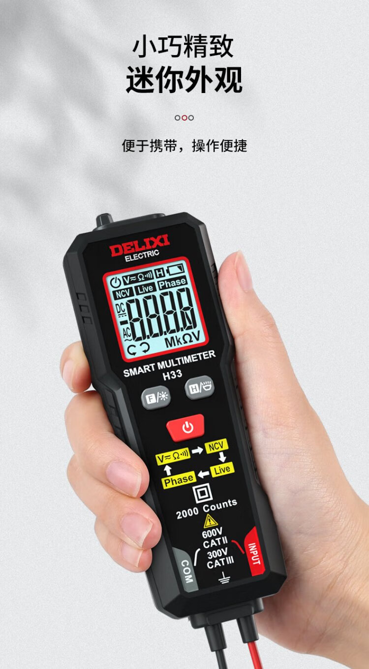 Delixi Electrical Multimeter Home Mini Intelligent Burn-proof Digital Multimeter NCV Detection H33