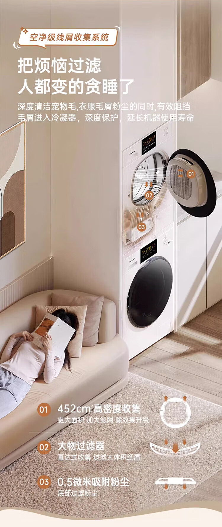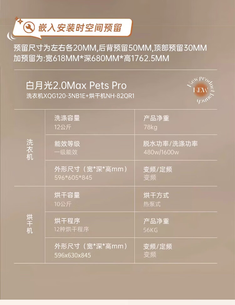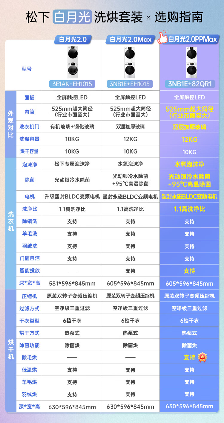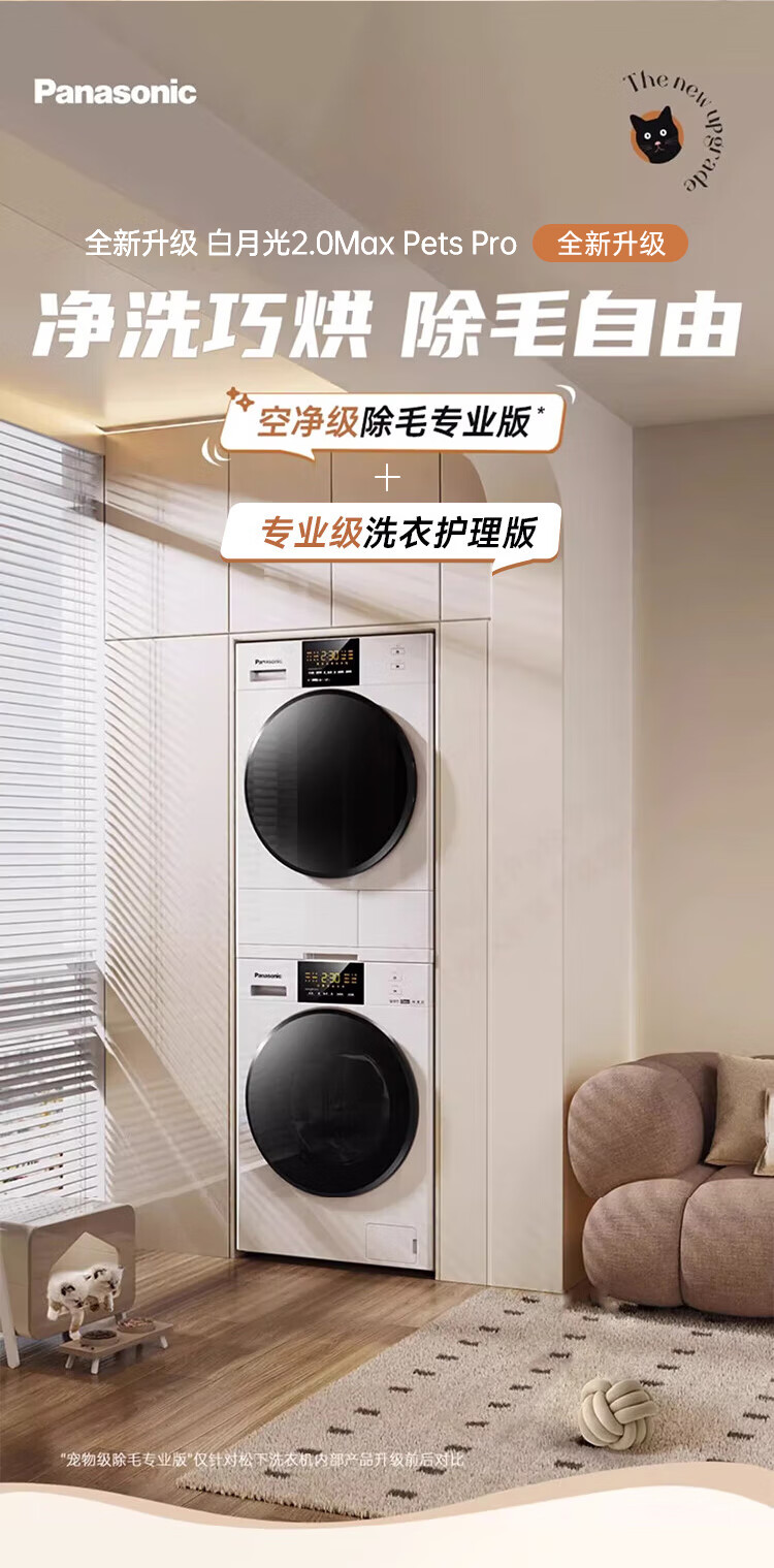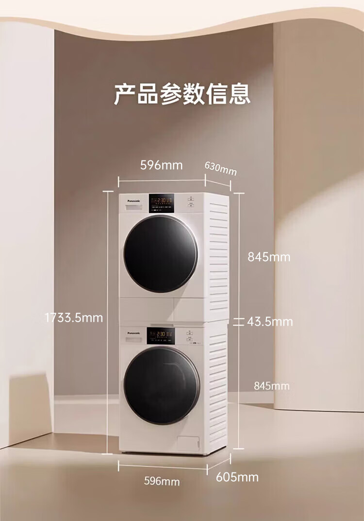 Panasonic White Moonlight 2.0PP Max upgraded care version 12+10 washing and drying set original inverter compressor hot and cold sterilization pet hair removal dryer 3NB1E+82QR1