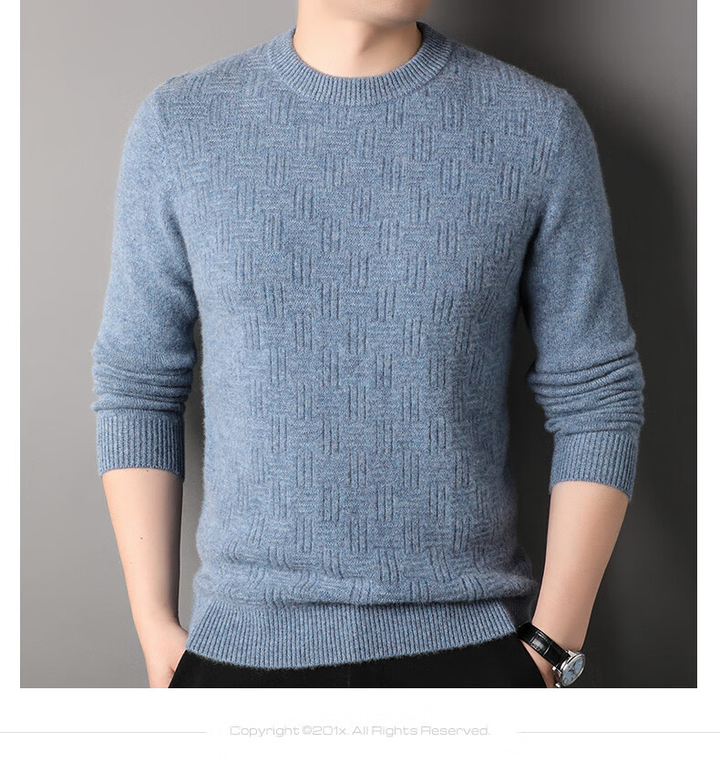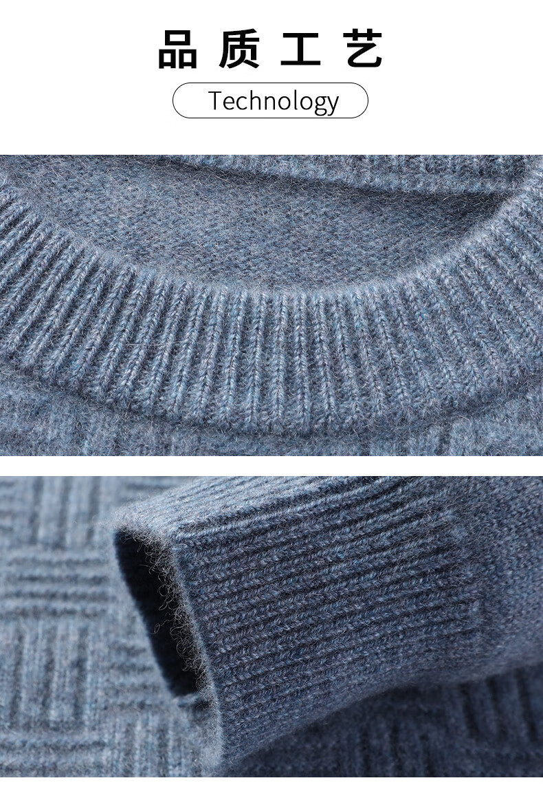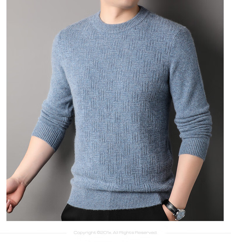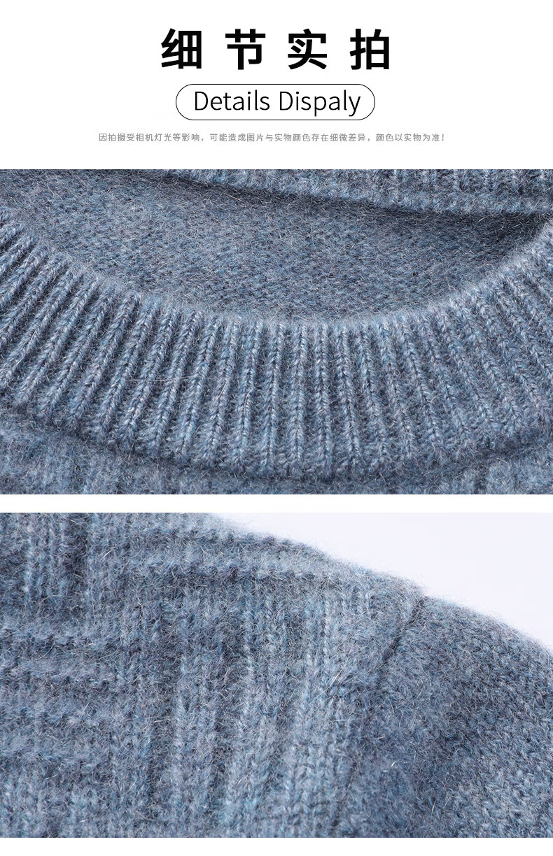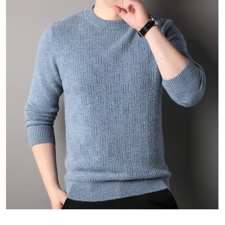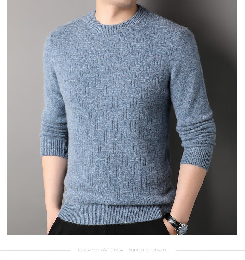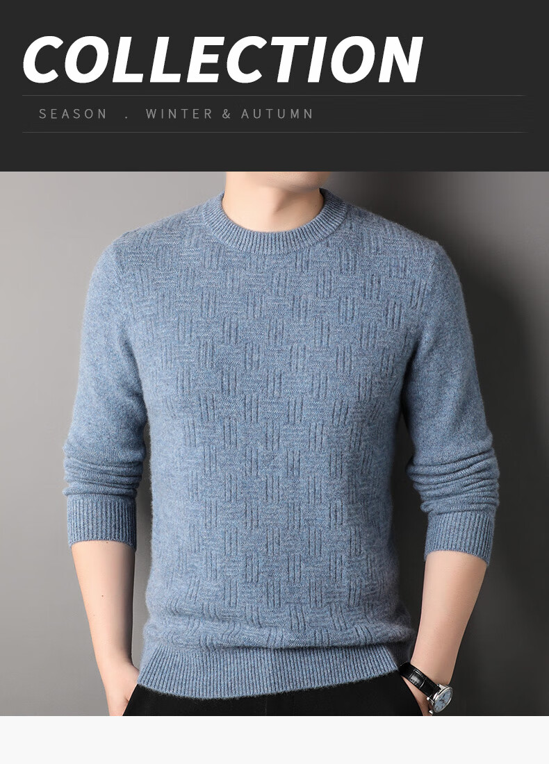 Hengyuanxiang 100% cashmere sweater men's round neck thick winter warm sweater 15381795 light blue 175/92A