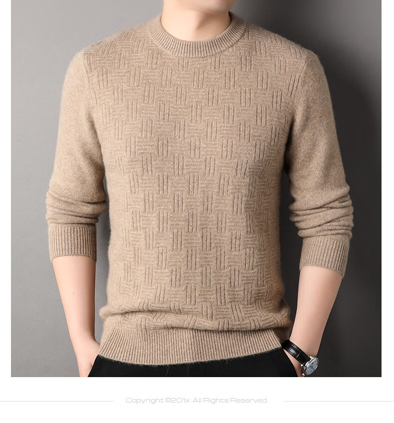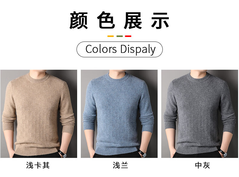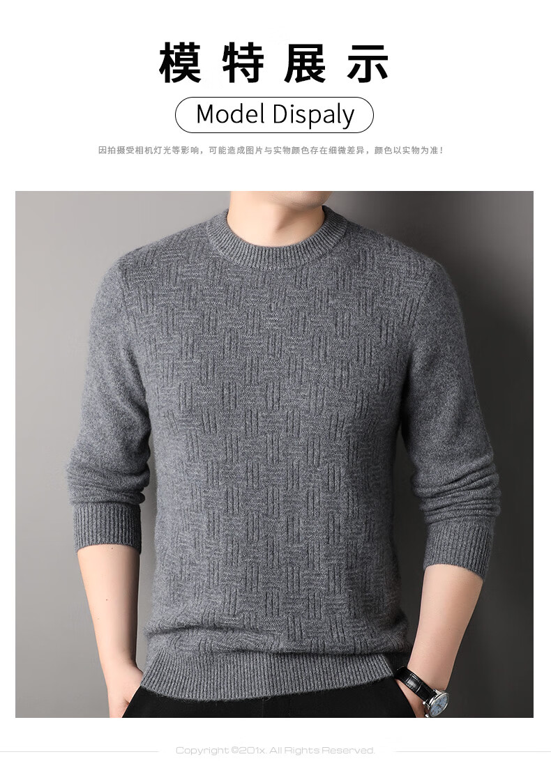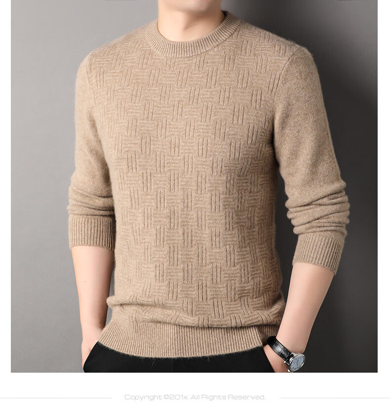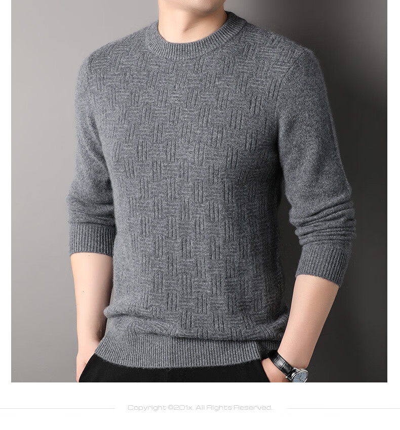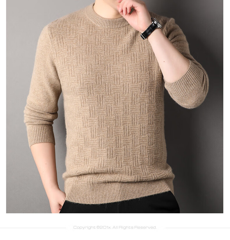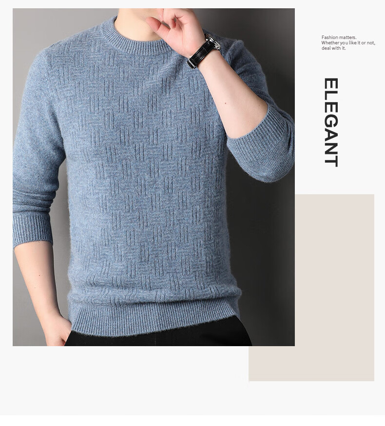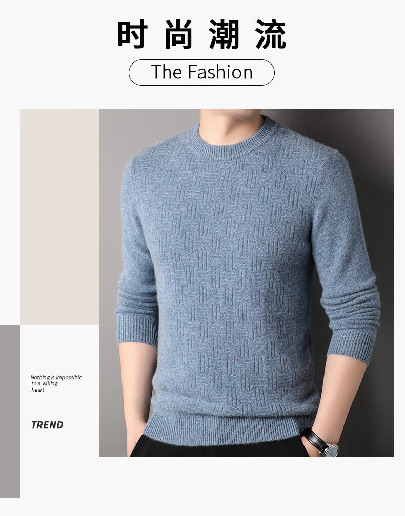 Hengyuanxiang 100% cashmere sweater men's round neck thick winter warm sweater 15381795 light blue 175/92A