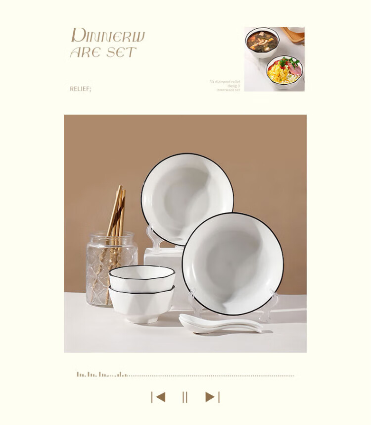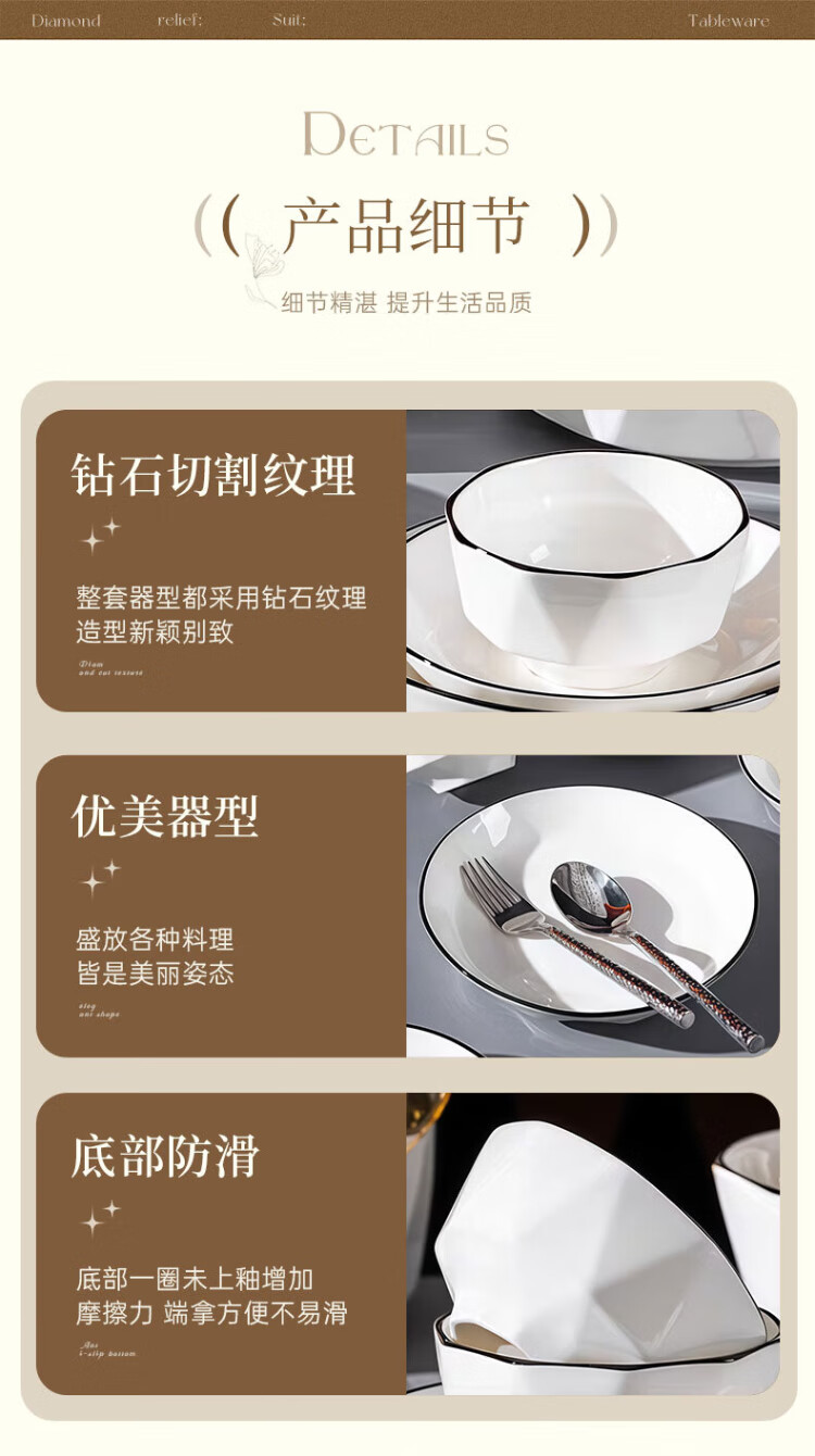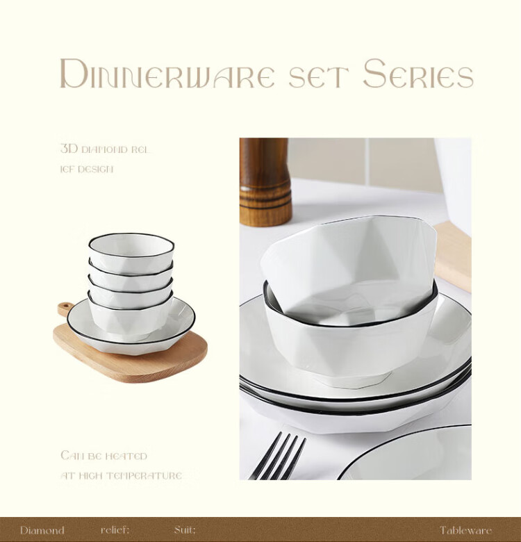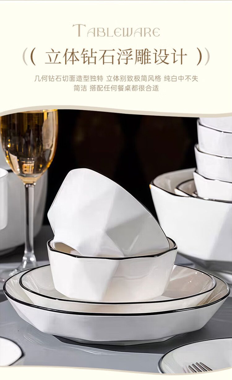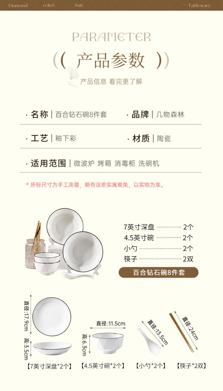 Jiwu Forest One-person meal bowl and plate set tableware set bowl and chopsticks combination plate bowl home gift diamond bowl 8-piece set