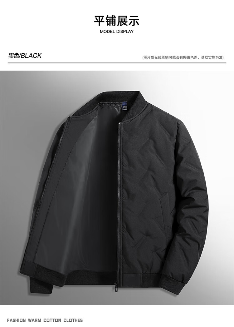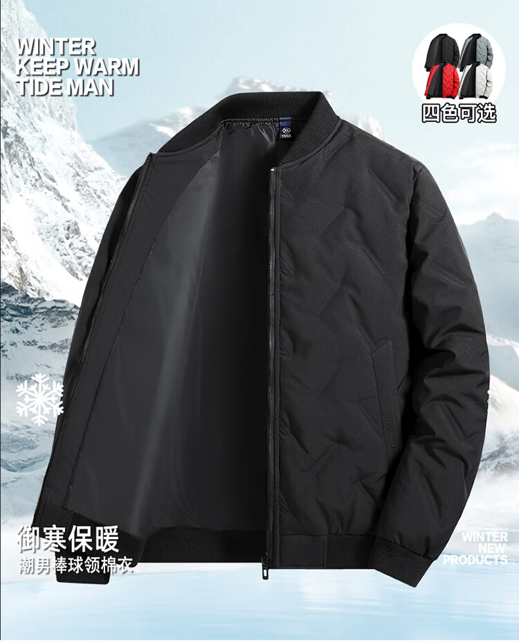 ROMON cotton-padded jacket for men, winter business baseball uniform, warm and versatile cotton-padded jacket, dad jacket, cotton-padded jacket for men, 882 black 3XL