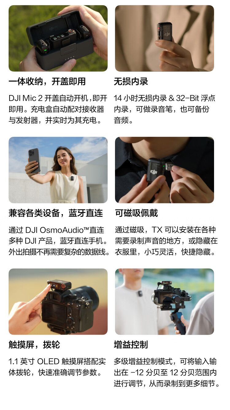 DJI Mic 2 (one for two, including charging box) professional sound quality wireless microphone Vlog live broadcast noise reduction microphone button-type lavalier microphone