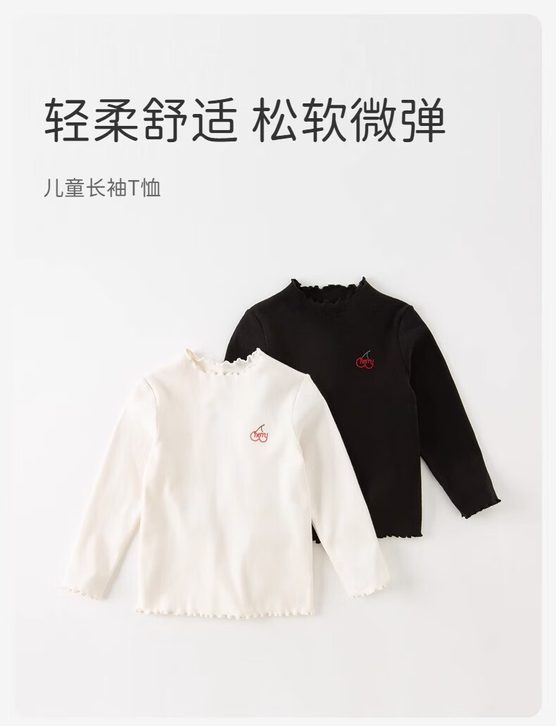 David Bella children's white long-sleeved T-shirt girls black bottoming shirt autumn clothing for big children, girls, babies, children's clothing