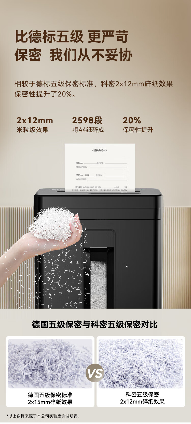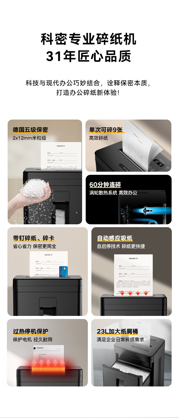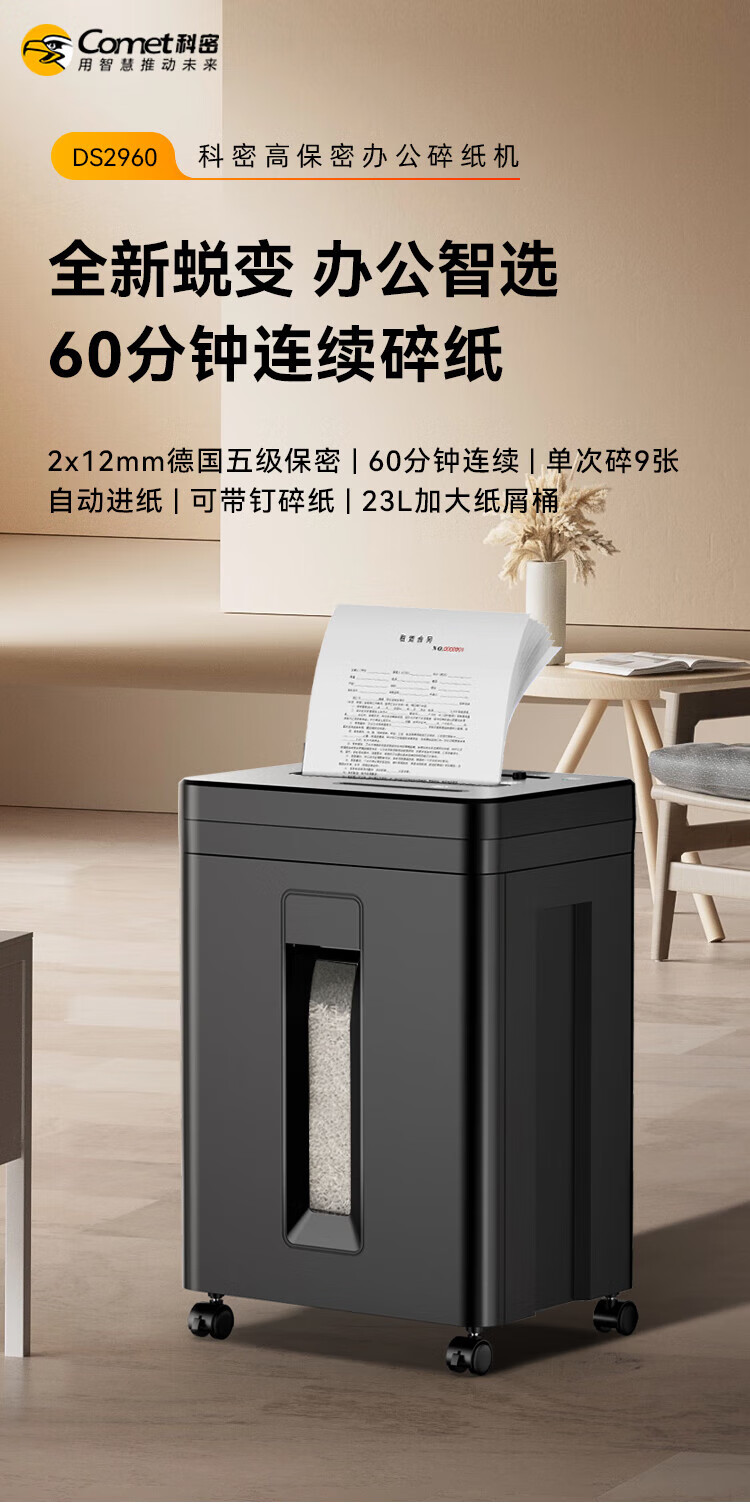 Kemi 60-minute 9-sheet 5-level confidential paper shredder office dedicated large business office household document shredder (high-speed shredding 23L) DS2960