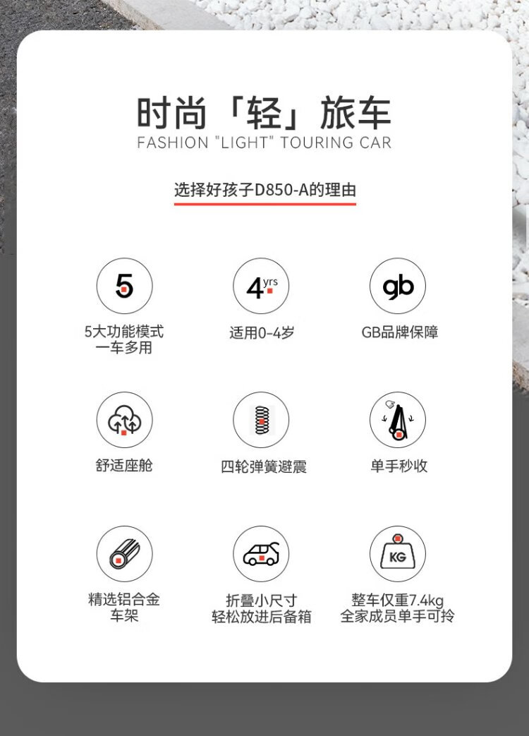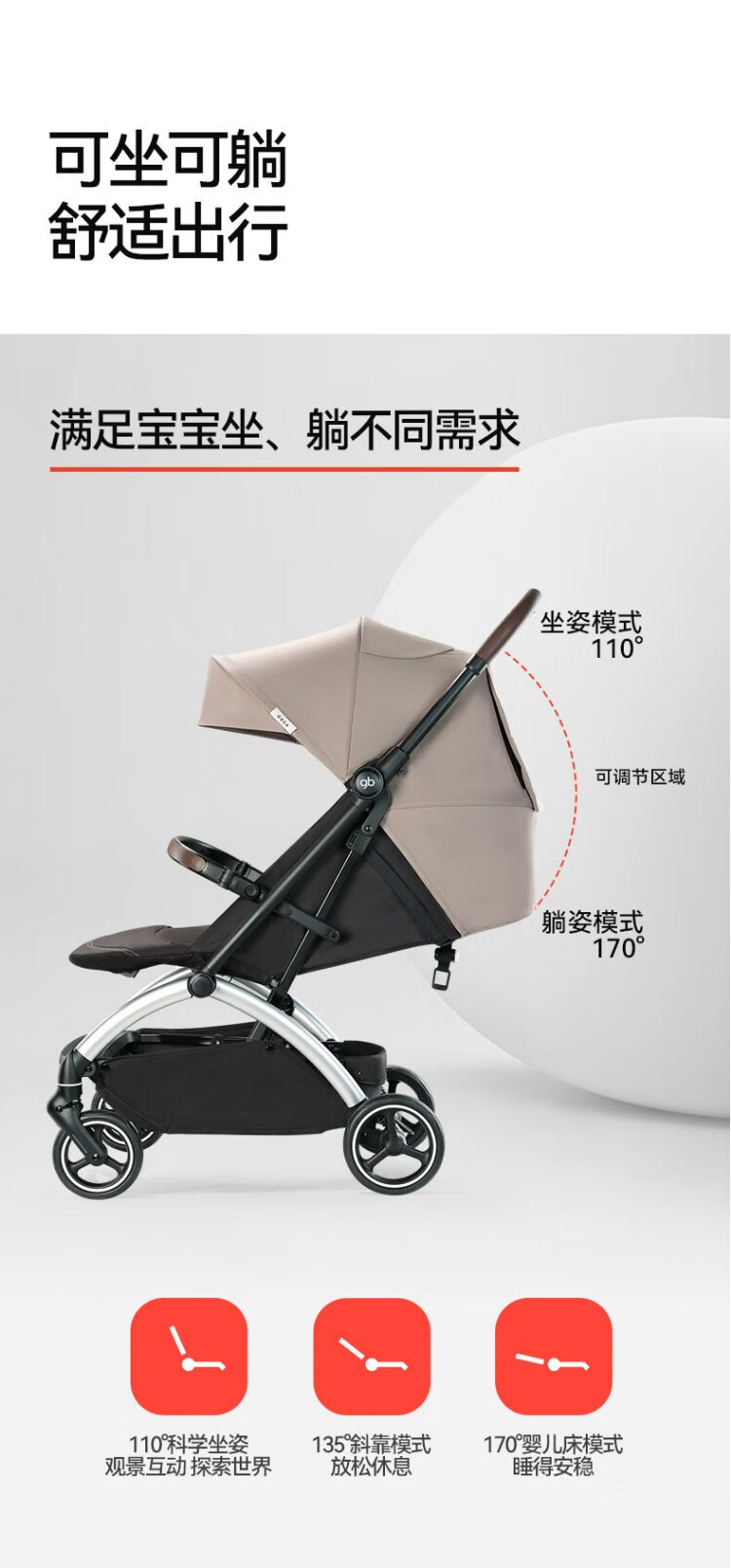 Goodbaby (gb) ORSA D850-A baby stroller can sit and lie down, lightweight baby stroller, shock absorber and comfortable baby stroller
