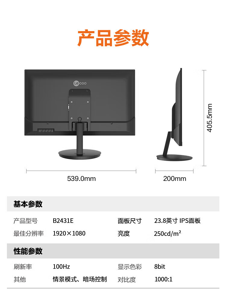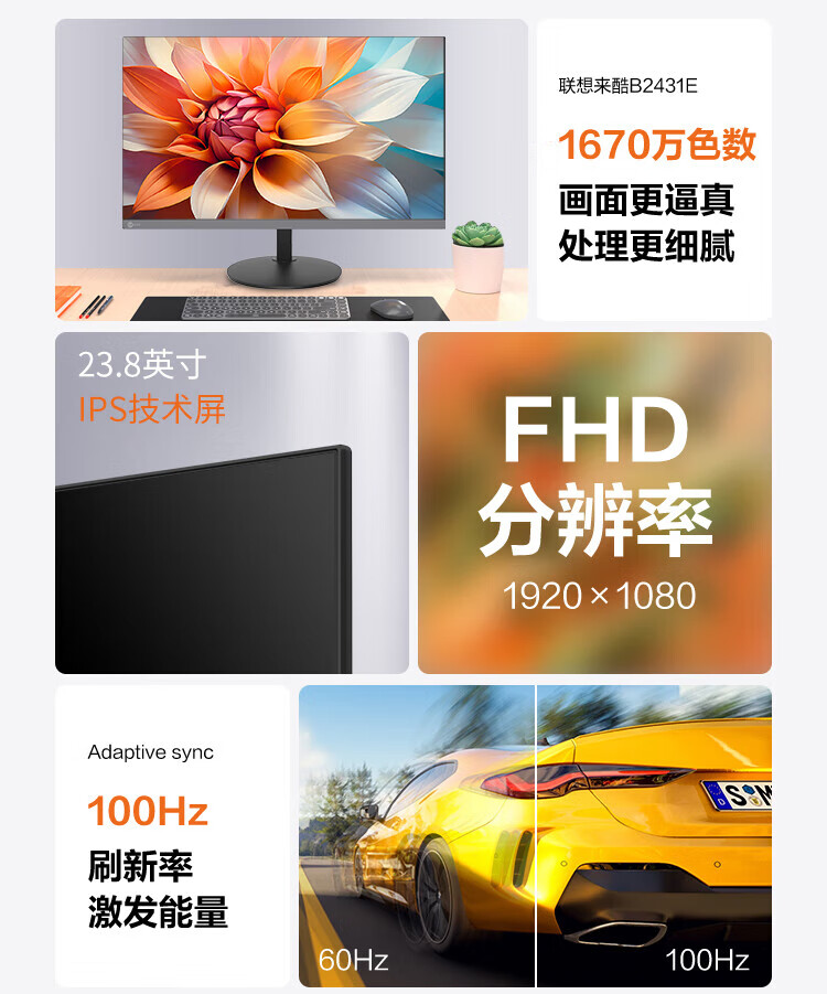 Lecoo Lecoo 23.8-inch IPS100Hz high brush full HD three micro-edge HDMI interface wide viewing angle can be wall-mounted computer office monitor B2431E