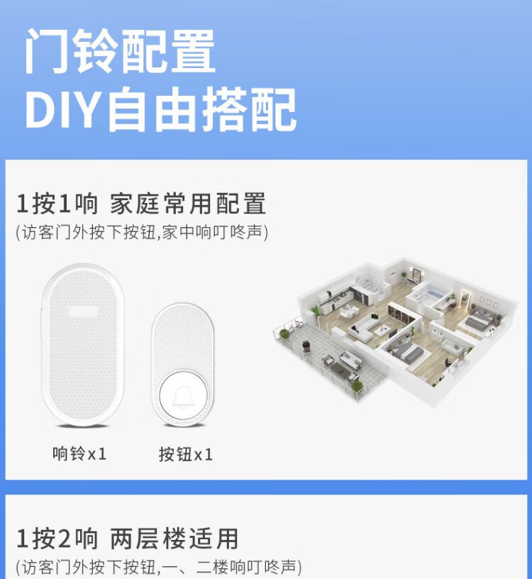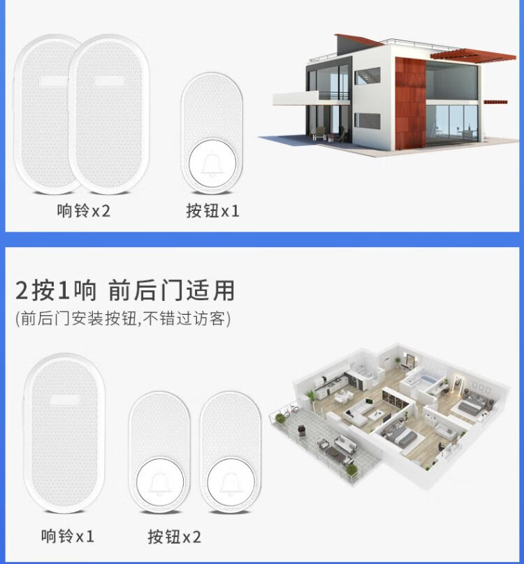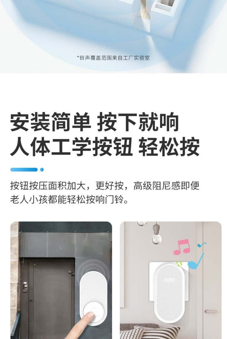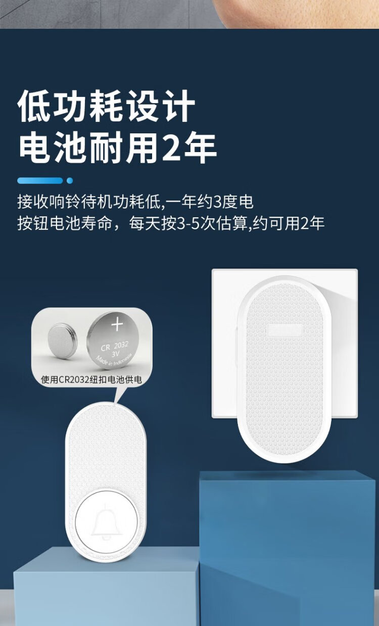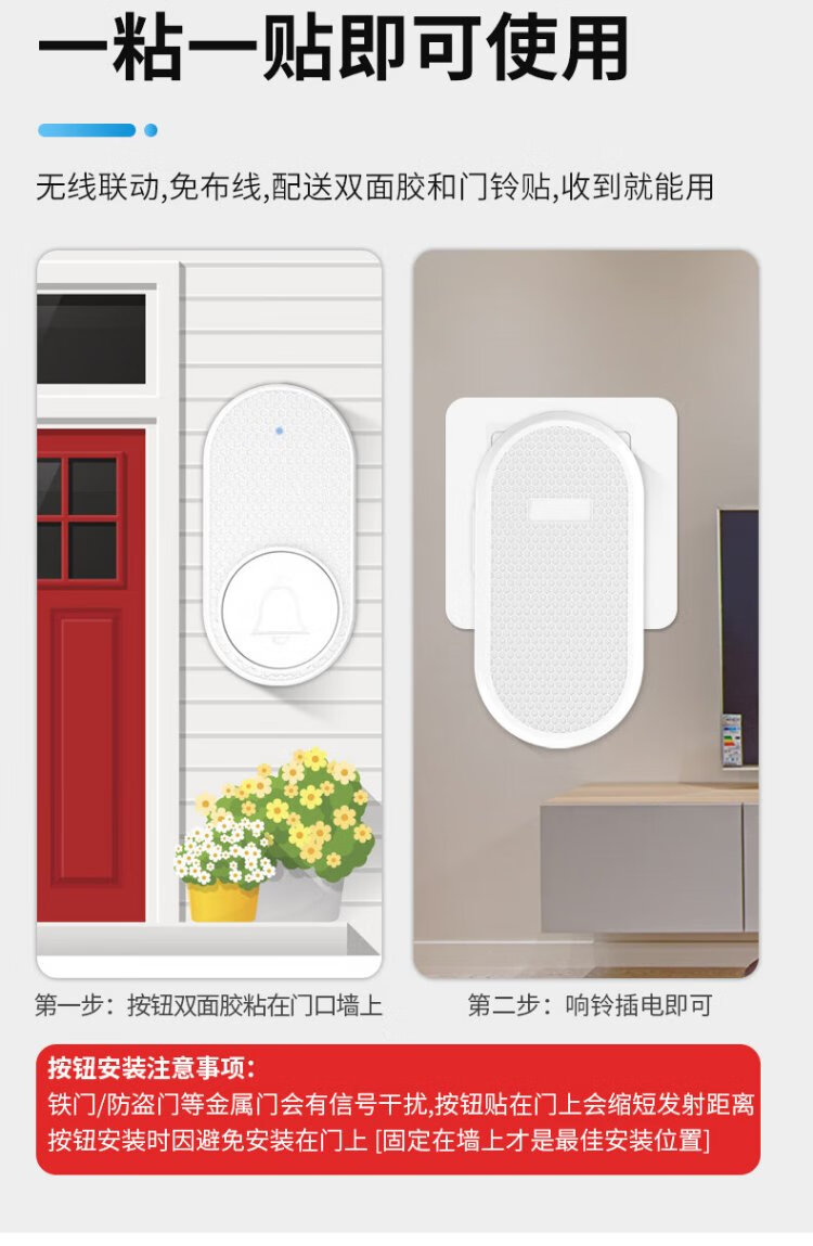 Bolian Smart Outdoor Waterproof Wireless Doorbell Ultra-long-distance household one-to-one electronic remote control doorbell Dingdong doorbell for home entry One-button pager for the elderly