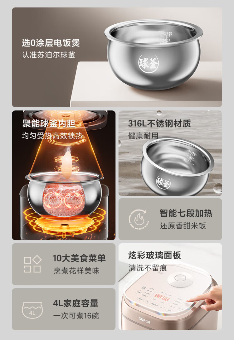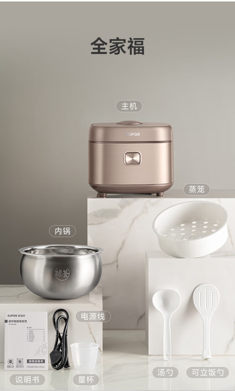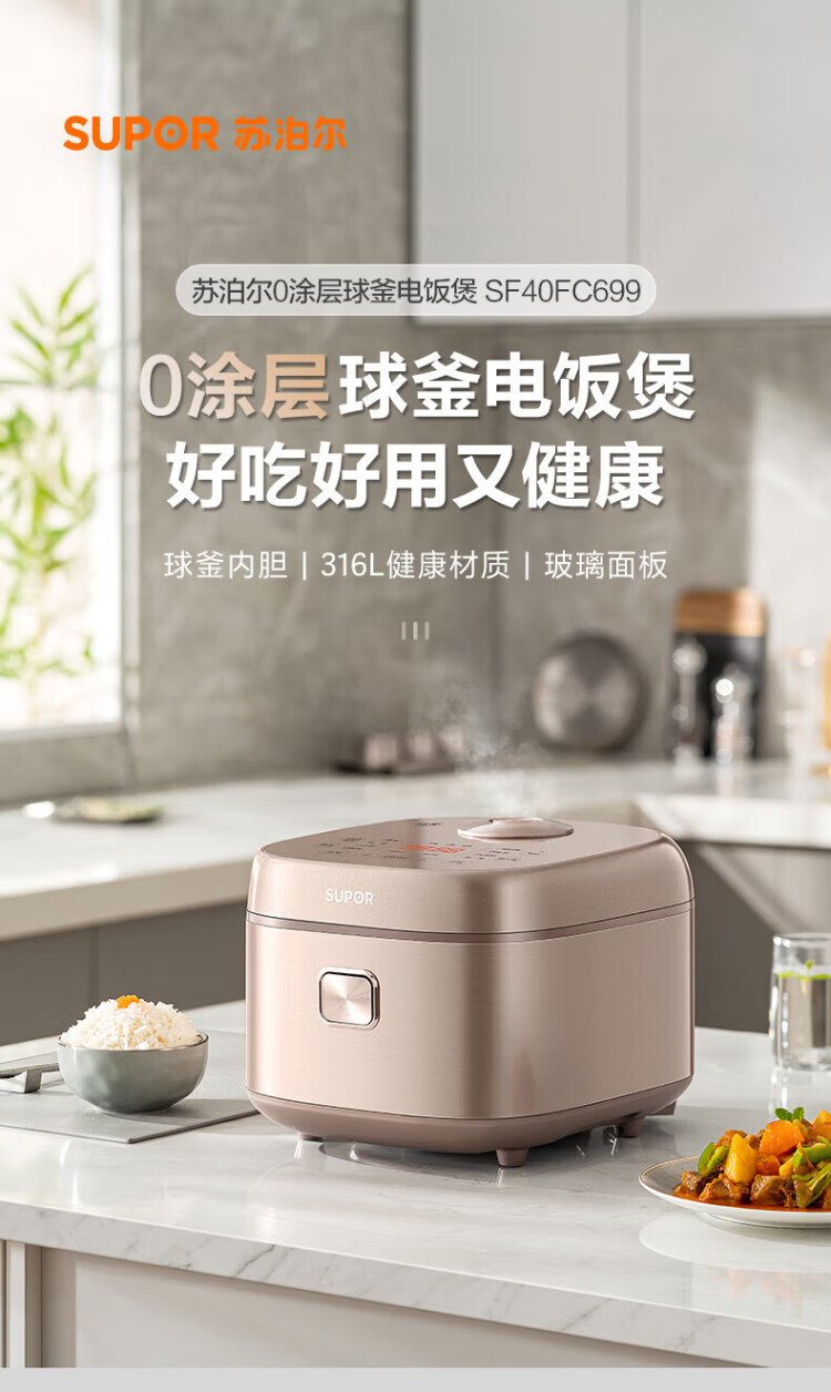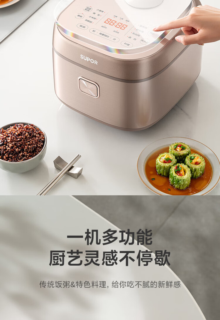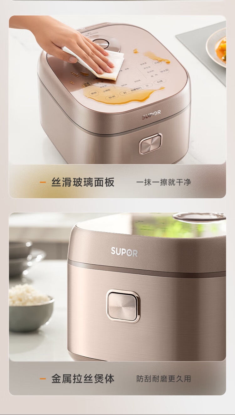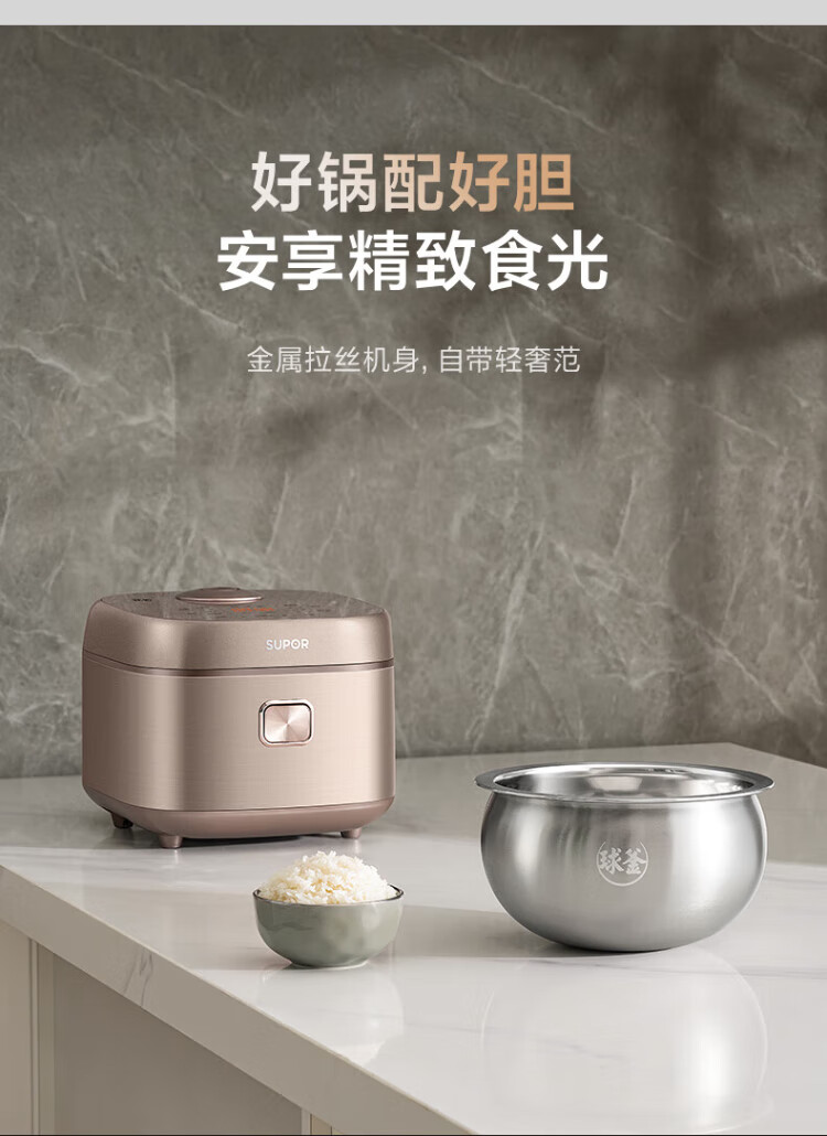 SUPOR rice cooker 0-coated ball kettle inner tank firewood rice 4 liters large capacity 3-4 people stainless steel home cooking millet porridge intelligent multi-function micro-pressure rice cooker SF40FC699