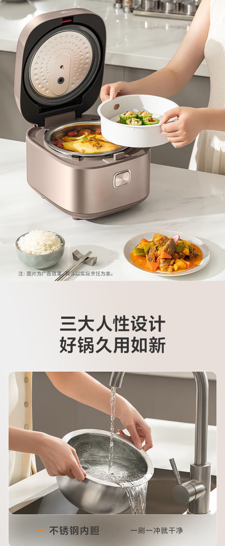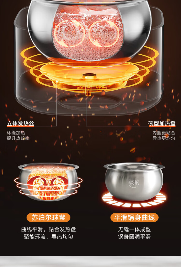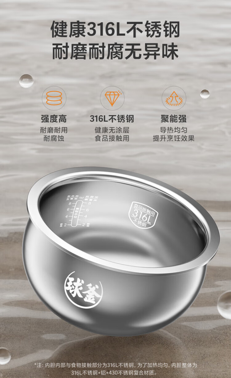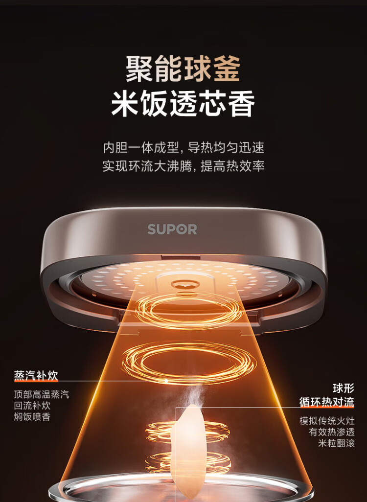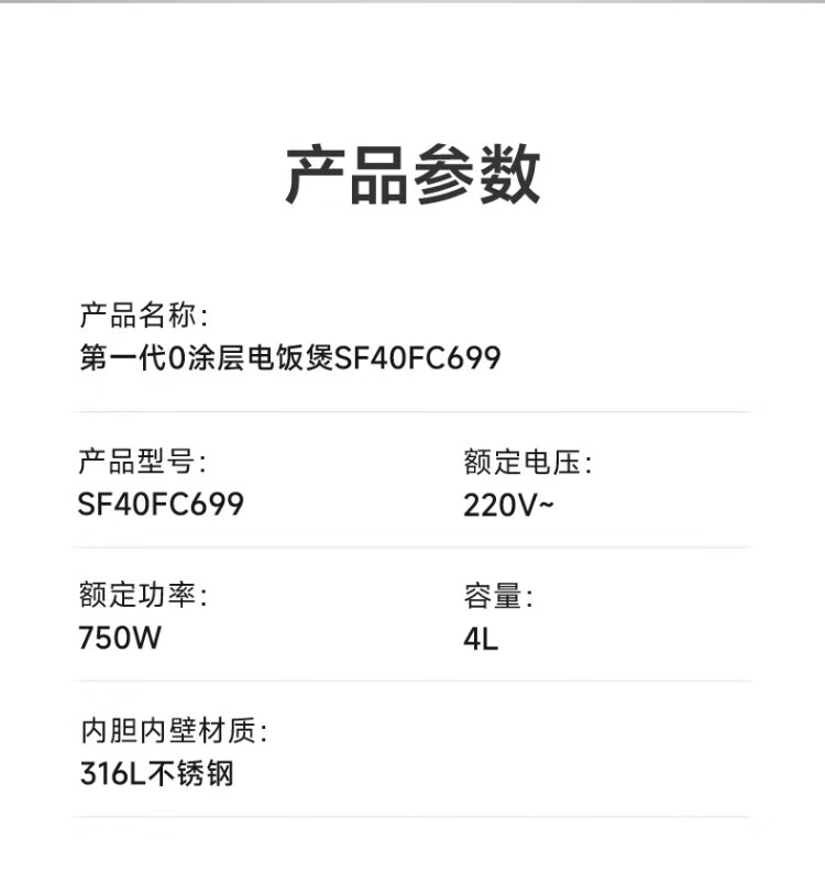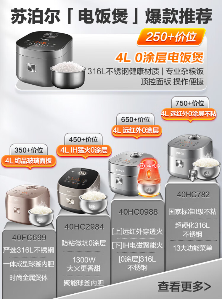 SUPOR rice cooker 0-coated ball kettle inner tank firewood rice 4 liters large capacity 3-4 people stainless steel home cooking millet porridge intelligent multi-function micro-pressure rice cooker SF40FC699