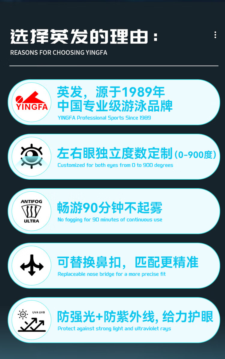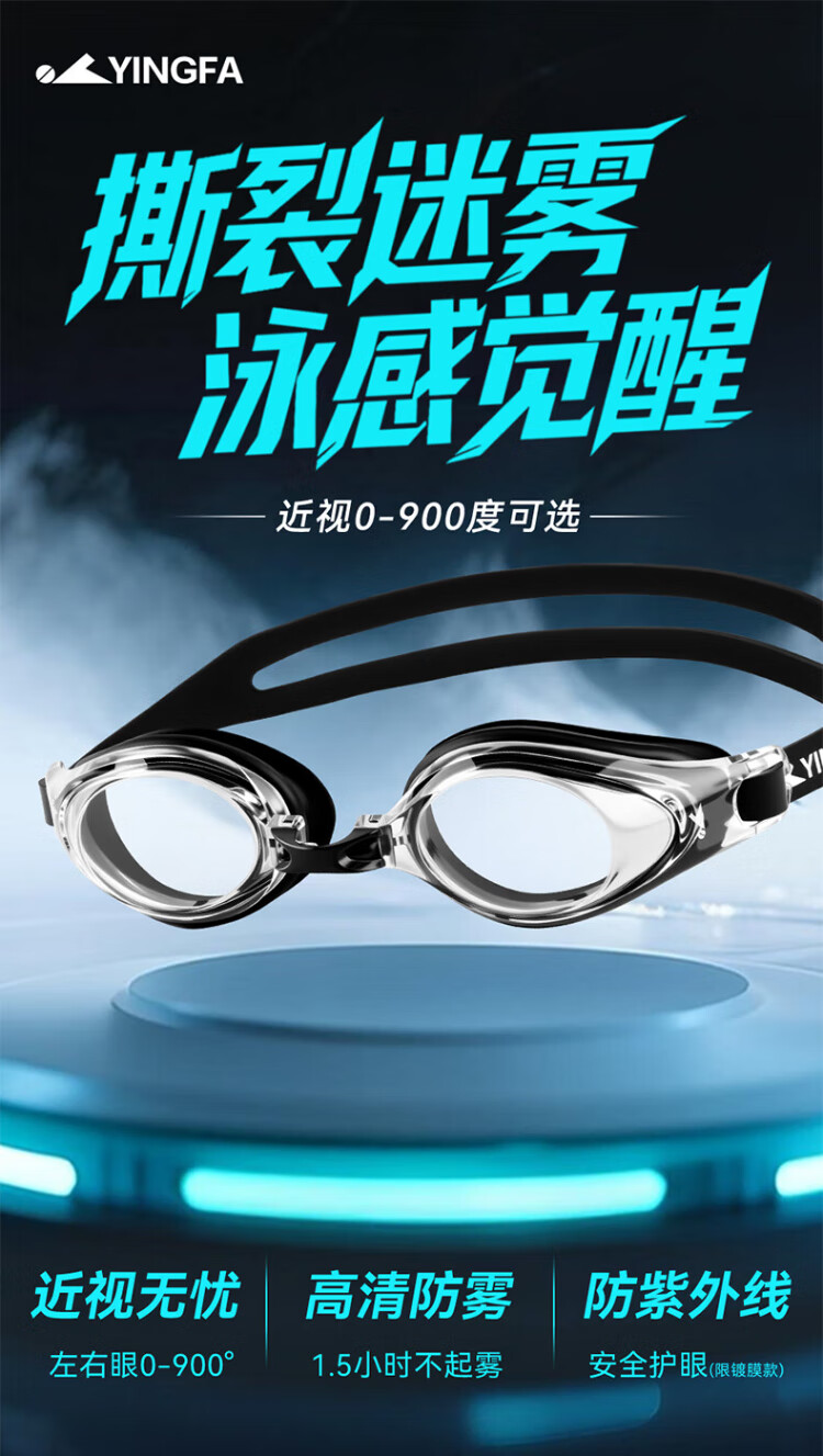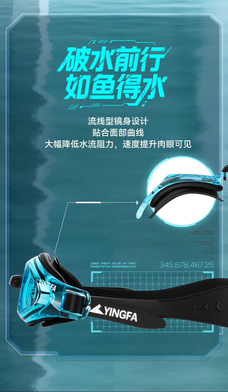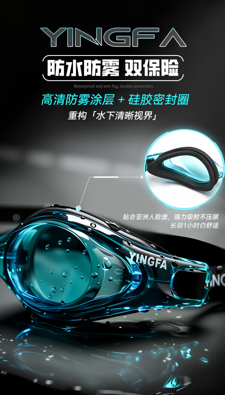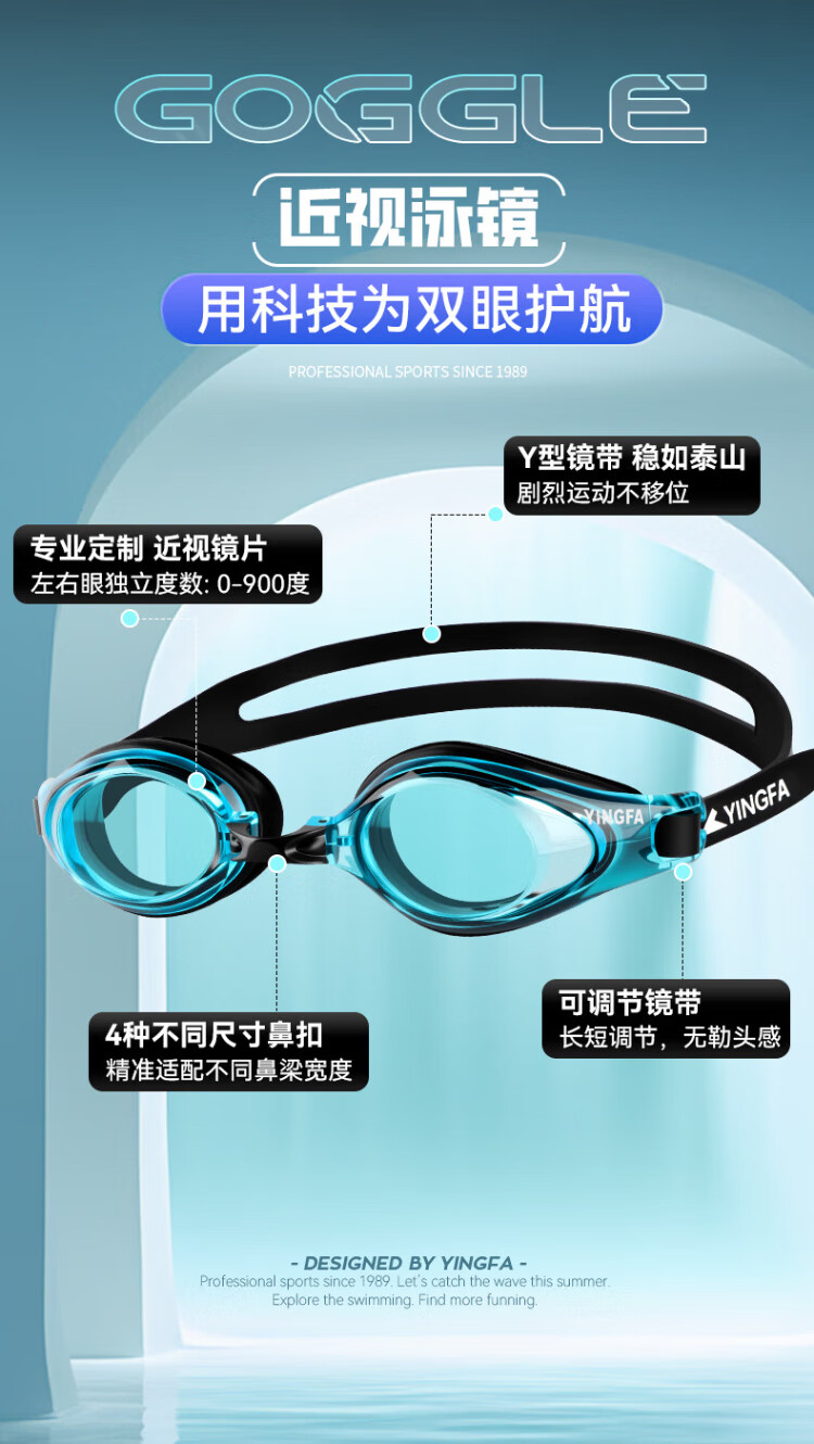 YINGFA custom-made left and right eye prescription swimming goggles for men, women, and children with size frames that can be coated with high-definition anti-fog myopia swimming goggles