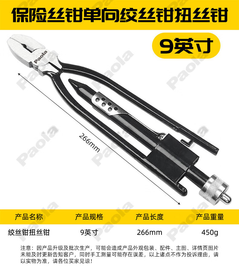 Paola 9-inch industrial-grade one-way fuse pliers twisted wire twisting pliers aviation fuse 8813