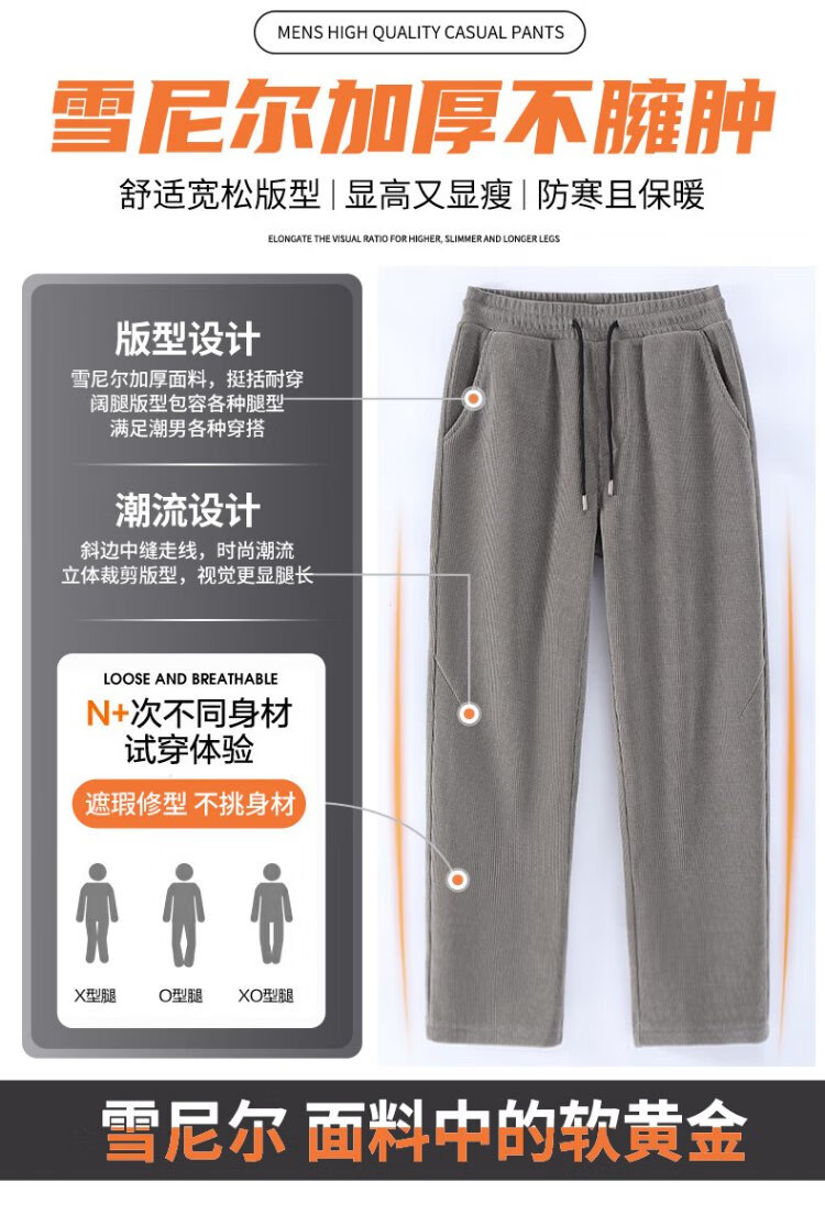 JEANSWEST LIFE JEANSWEST American casual pants for men in autumn and winter plus velvet and thickened chenille trendy trousers for men straight pants