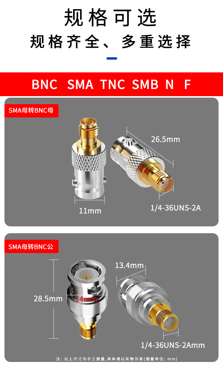 FUWEISHENG SMA to BNC adapter RF coaxial adapter 50 RF radio frequency cable adapter SMA female to BNC male 1 piece
