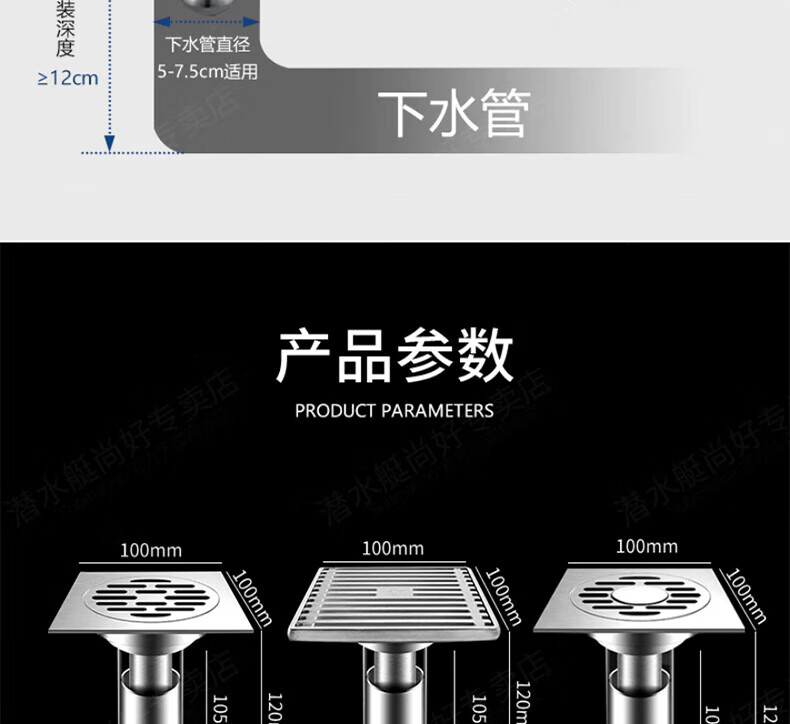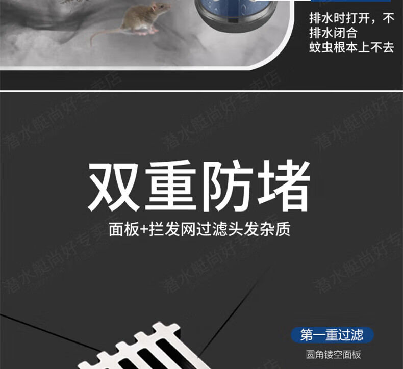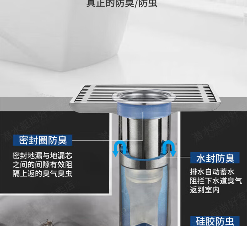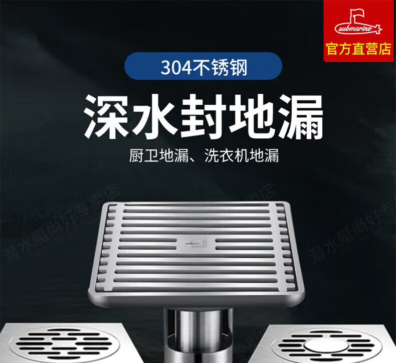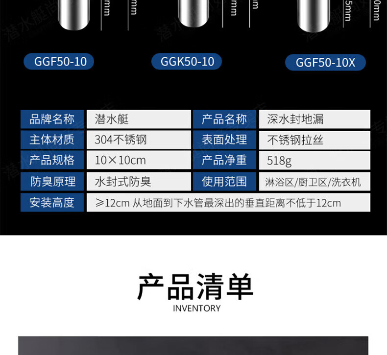 Submarine GGK50-10 deep water sealed floor drain, deodorant 304 stainless steel U-shaped core shower bathroom deep water sealed floor drain