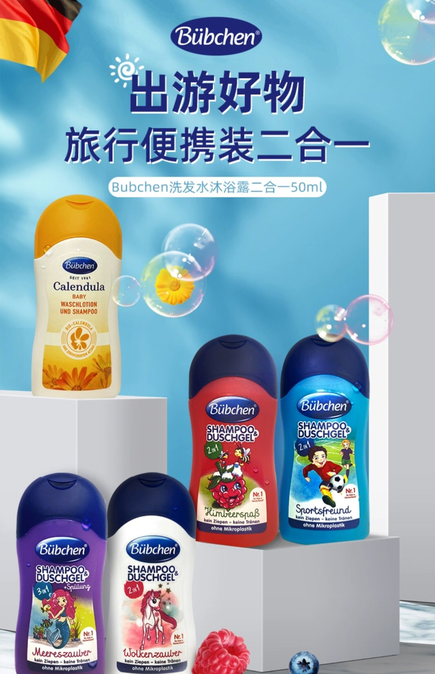 German Bubchen shampoo and shower gel two-in-one baby 50ml convenient sports boy