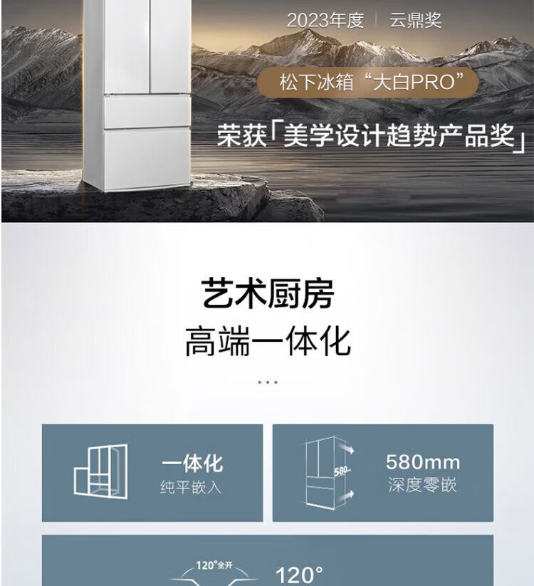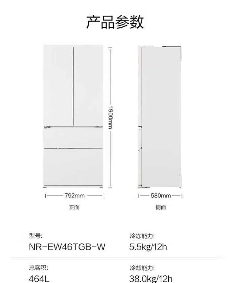 Panasonic Dabai PRO 464 liter household multi-door refrigerator first-class energy efficiency four-door large capacity 580mm ultra-thin built-in French refrigerator NR-EW46TGB-W