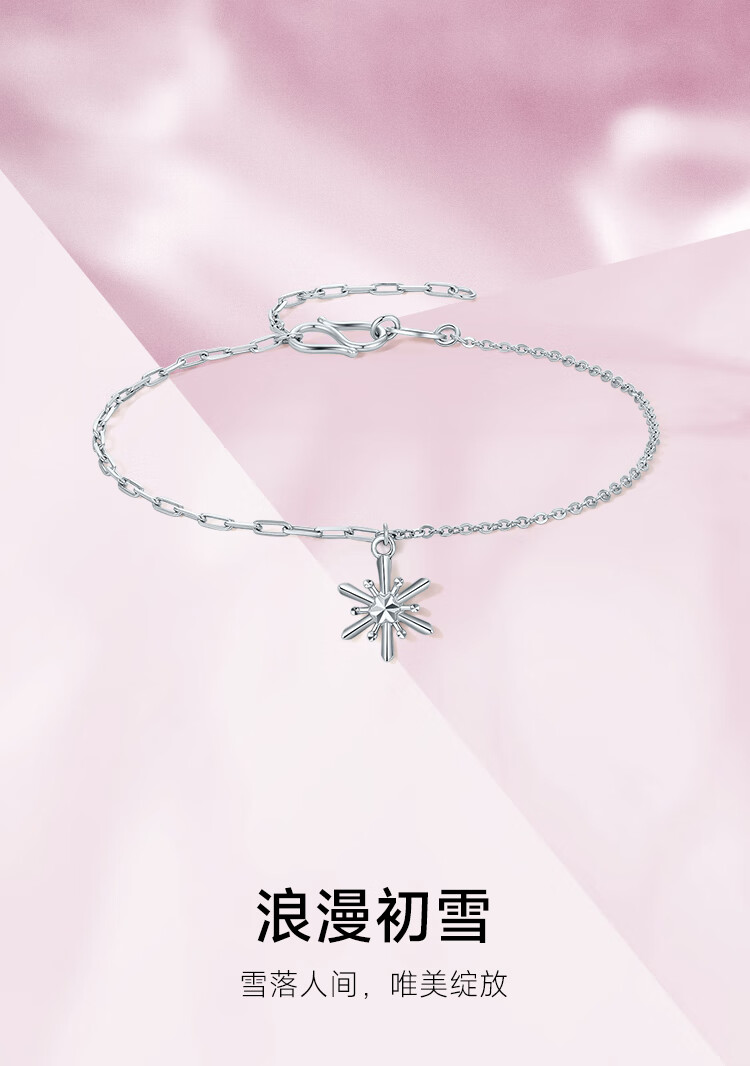 Saturday Fortune PT950 platinum bracelet for women, romantic first snow gift for girlfriend B0712597, about 2.05g 16+3cm