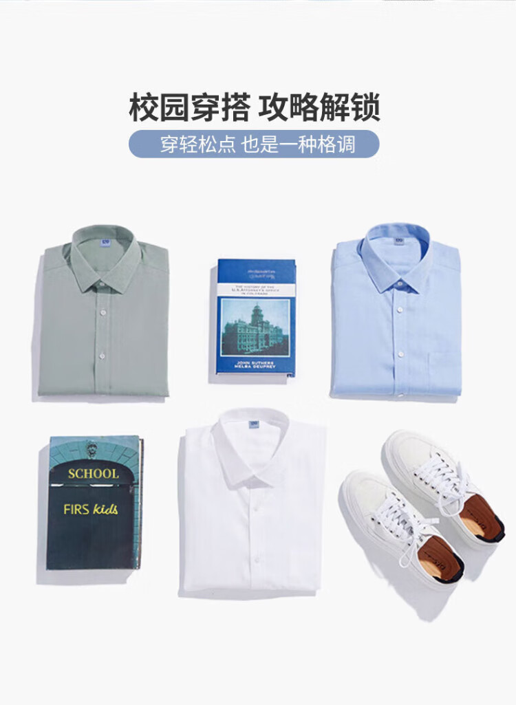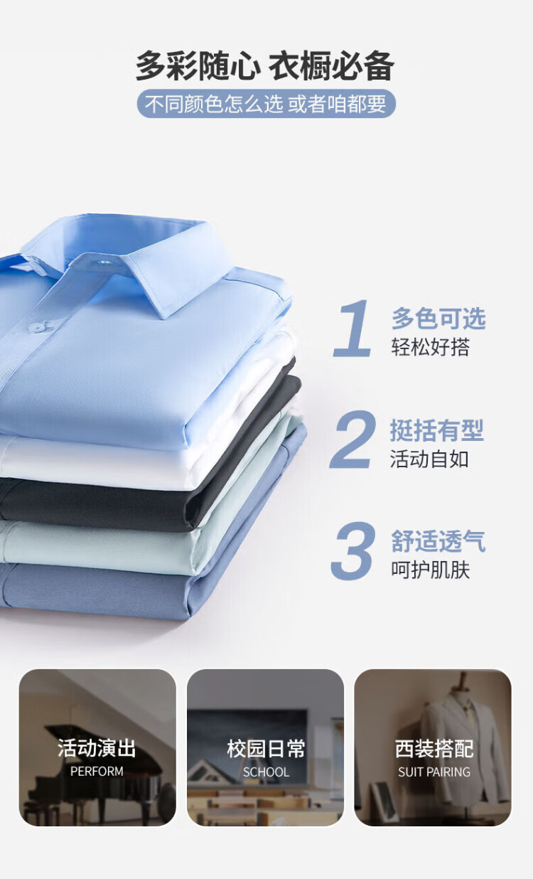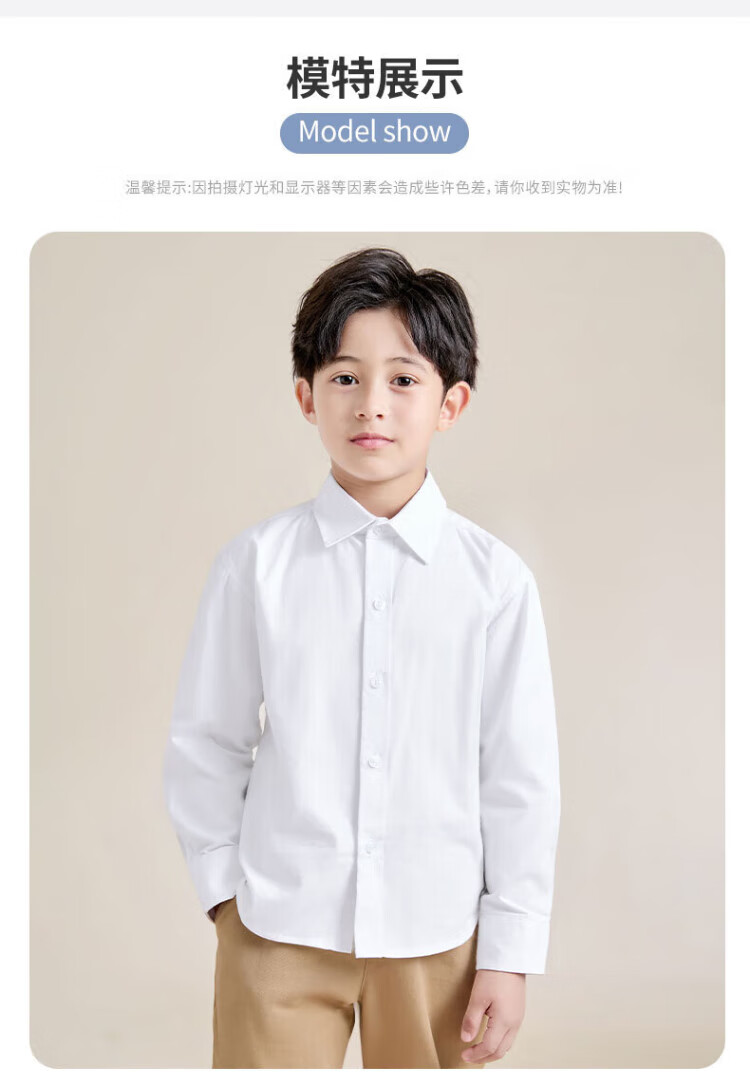Romon boys' shirt spring and autumn girls' long-sleeved solid color shirt student performance campus clothing children's white shirt 130