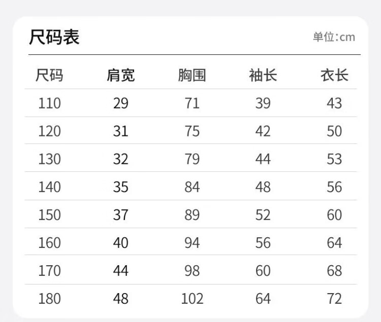 China(cm) 72-76 76-81 81-87 87-93 93-98
